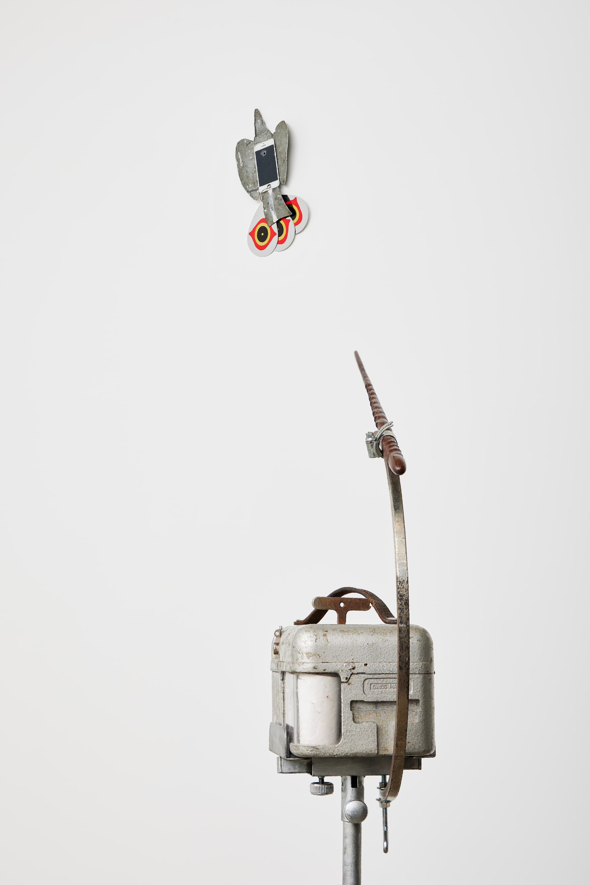 Tamperproof pigeon racing clock, steel globe stand, wooden replica Cho Chang wand, plastic pigeon determent hanging eyes, metal pigeon predator replica and broken iPhone screen
