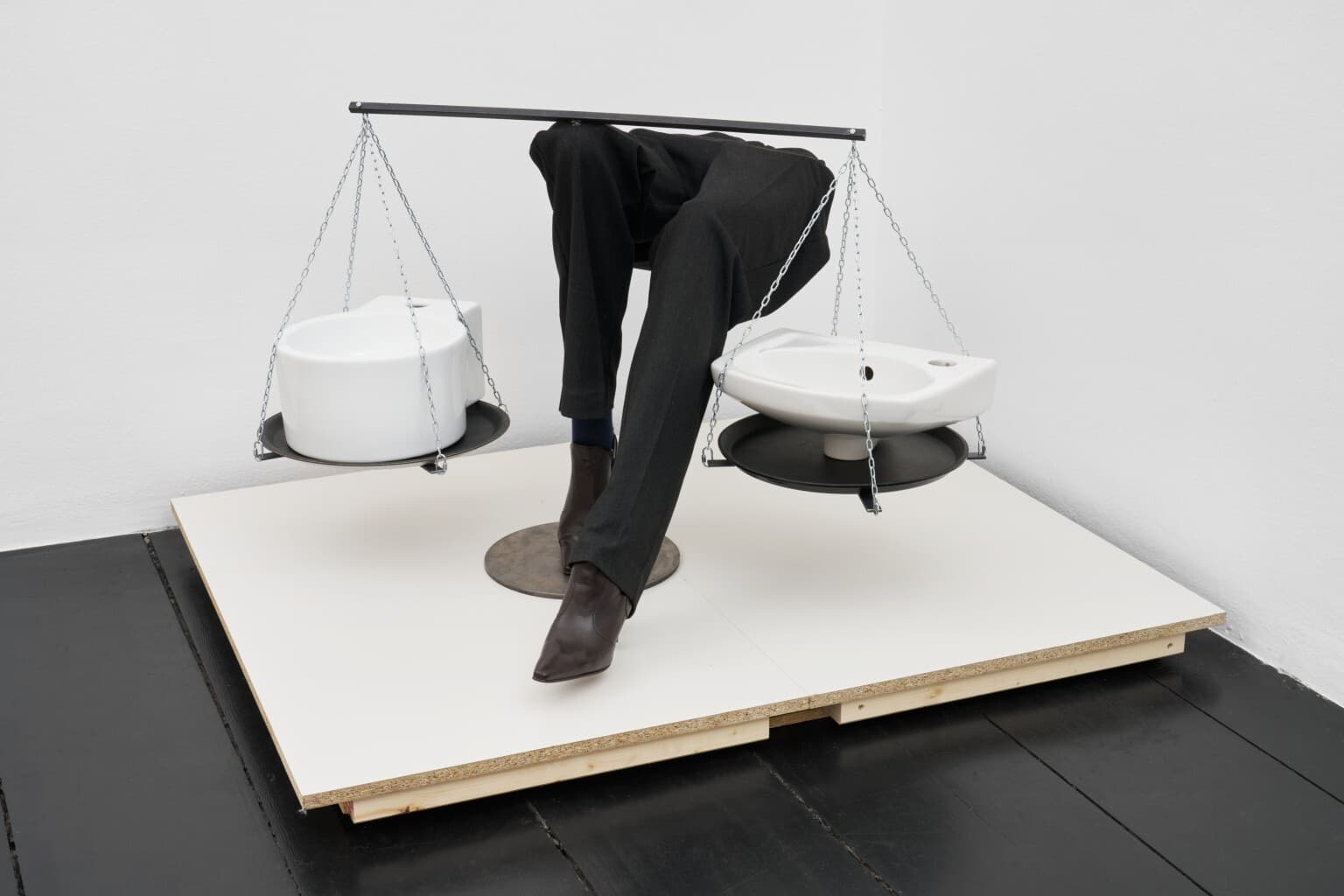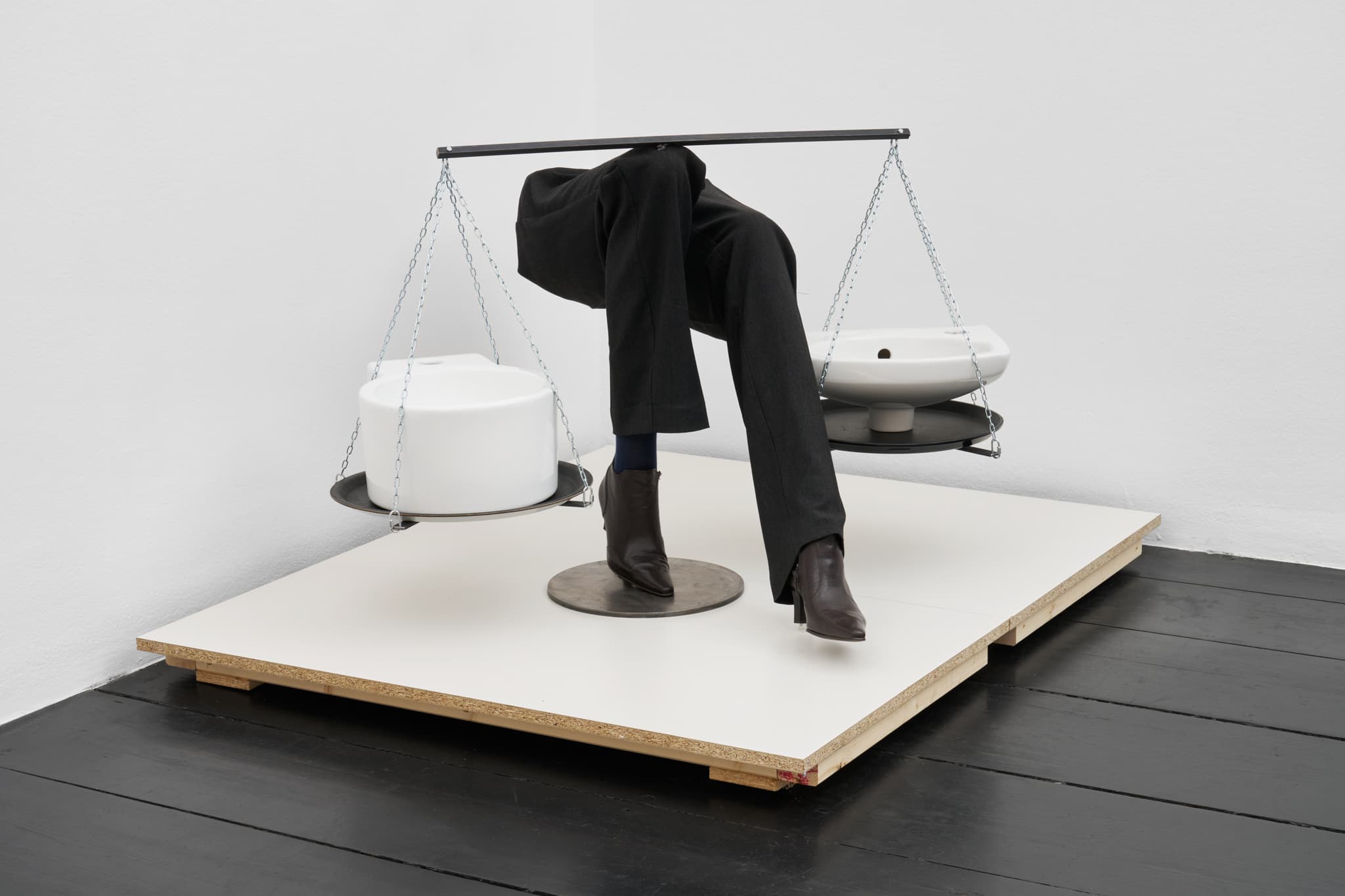 Morag Keil’s practice can be described as ouroboric: self-referring, self-erasing, self- consuming, regurgitating. Keil’s installations have the bald efficiency of something bargain-bucket but workable. The clunky papier-mâché houses downtrodden with office heels or low-fi glitchy videos actualises her reflection of contemporaneity’s squashing and conditioning of subjectivity, as well as the interlocking of production and pleasure. Beneath the watermark of professionalism and propriety lies a cesspit of personal contradictions and anxiety-trimmed mediations.