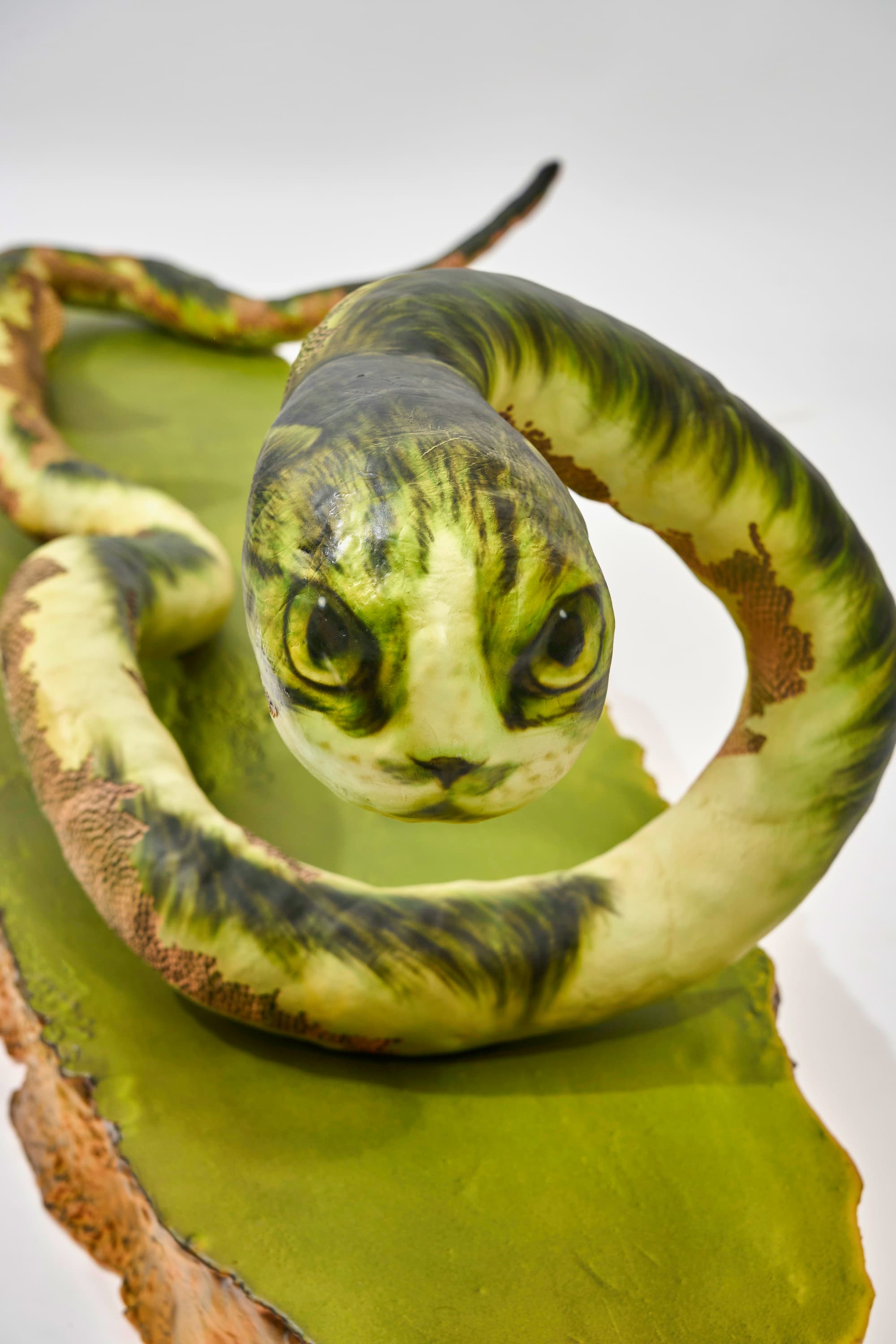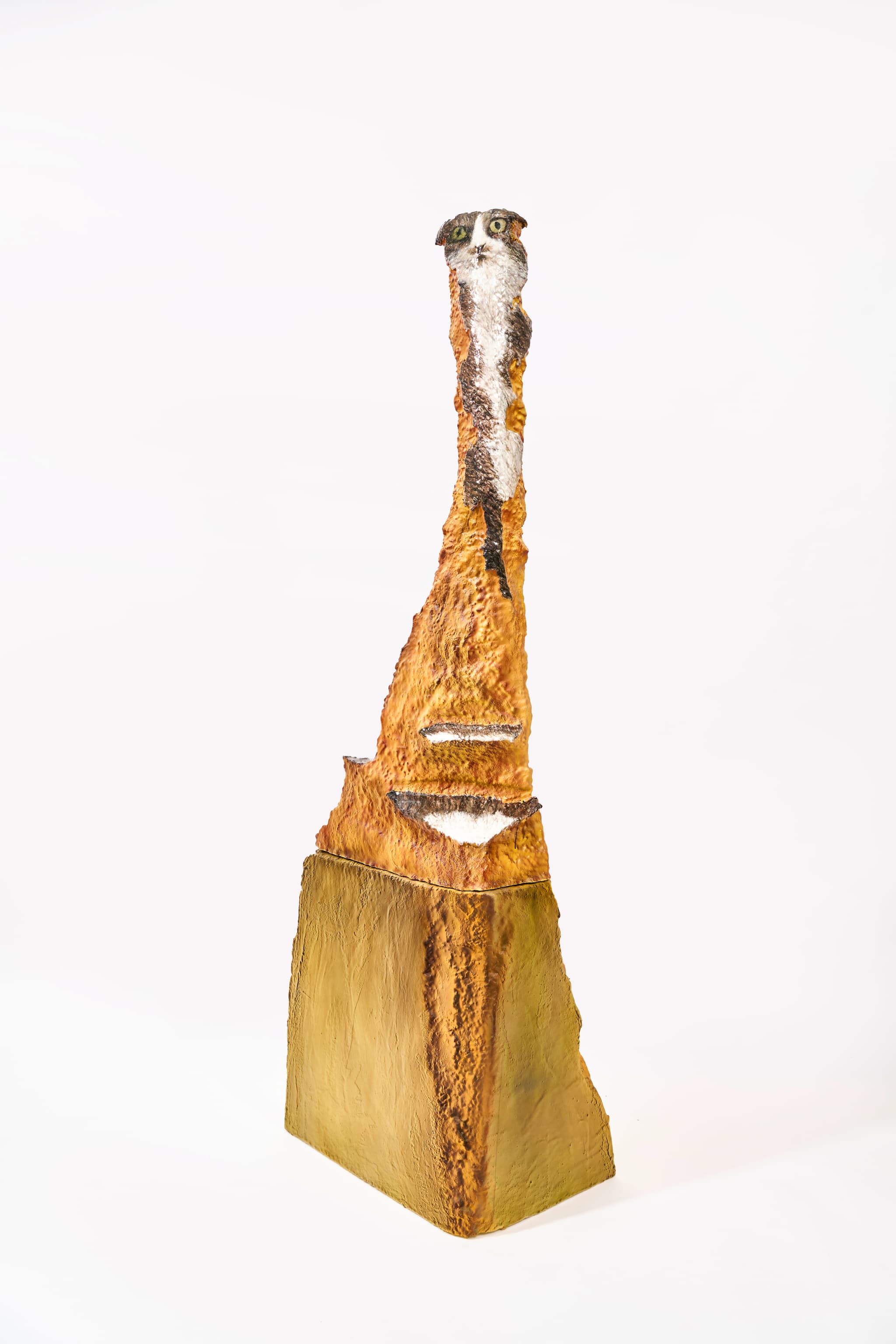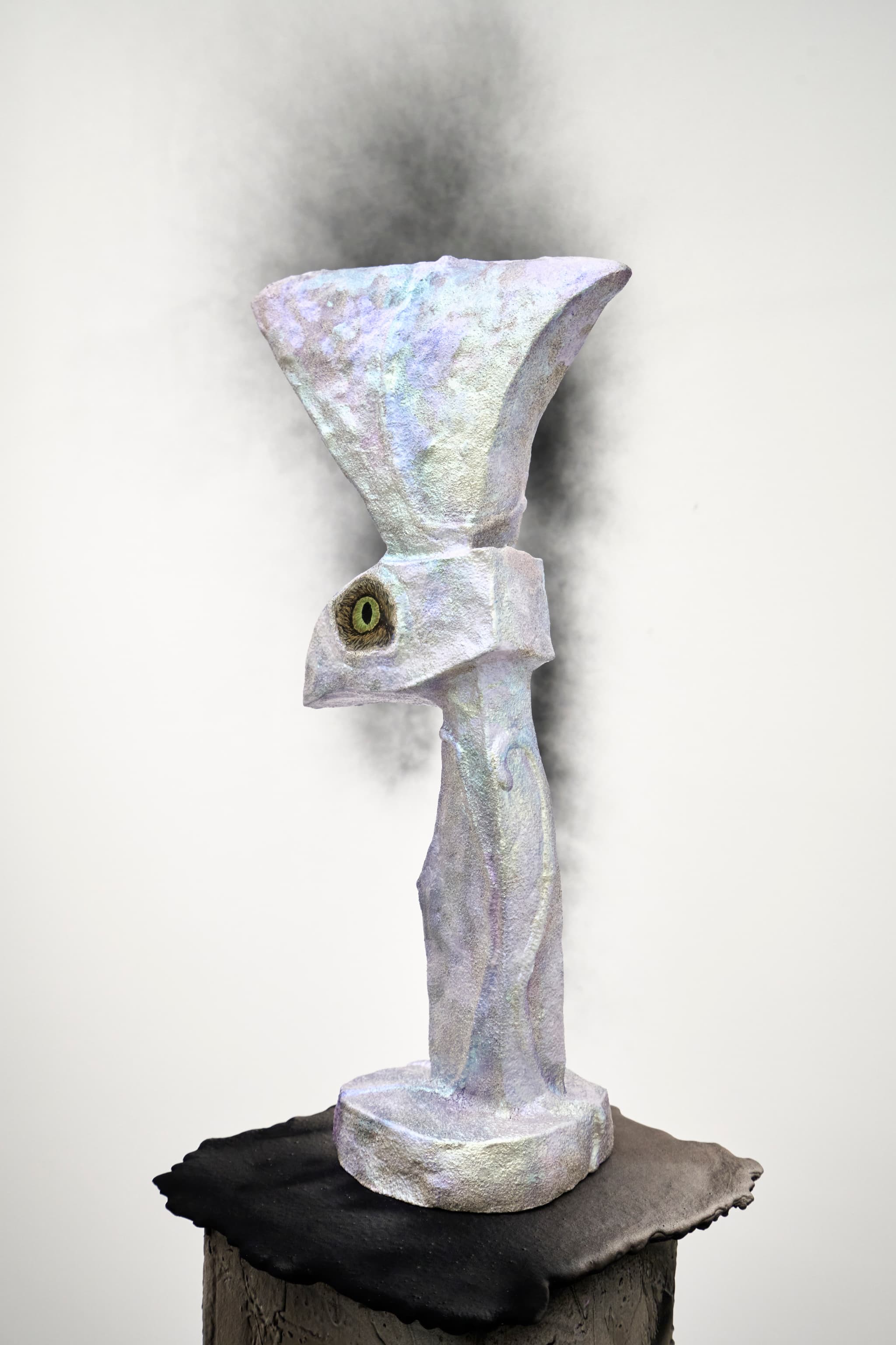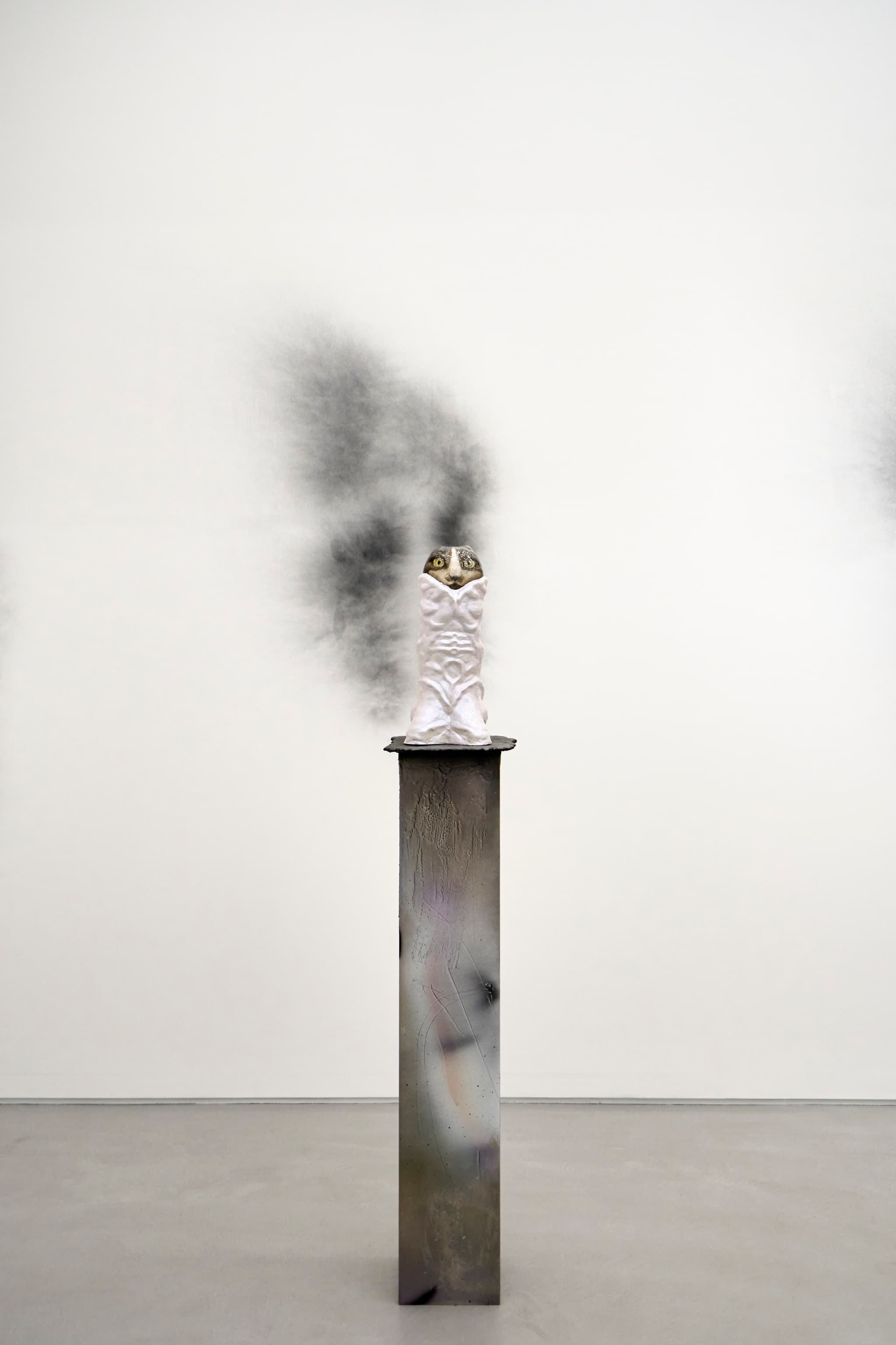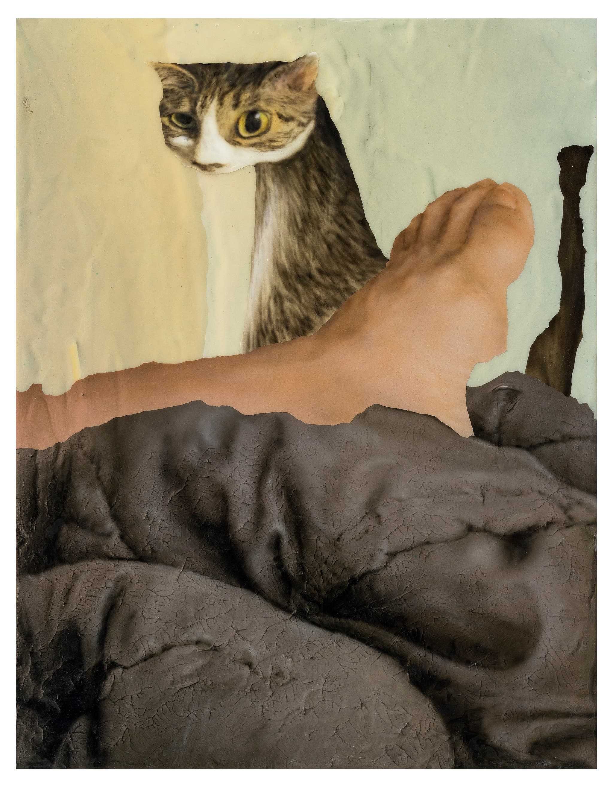 As the birth and death of images are repeated infinitely online, Ahn seeks to depict how technology and late capitalism have been corporally absorbed and continually alter our perception of reality. His practice honours the nonsense, ruse and the erroneous nature of existence. Resembling the filters we play with on our phones, he seamlessly texture-maps depictions of Hiro, his pet cat, onto organically contorting resin forms. Ahn confronts the malleability of representation and the enduring process of becoming. In his latest body of works, he introduces a new character into the memeitic universe of his own creation, Mako the kitten.