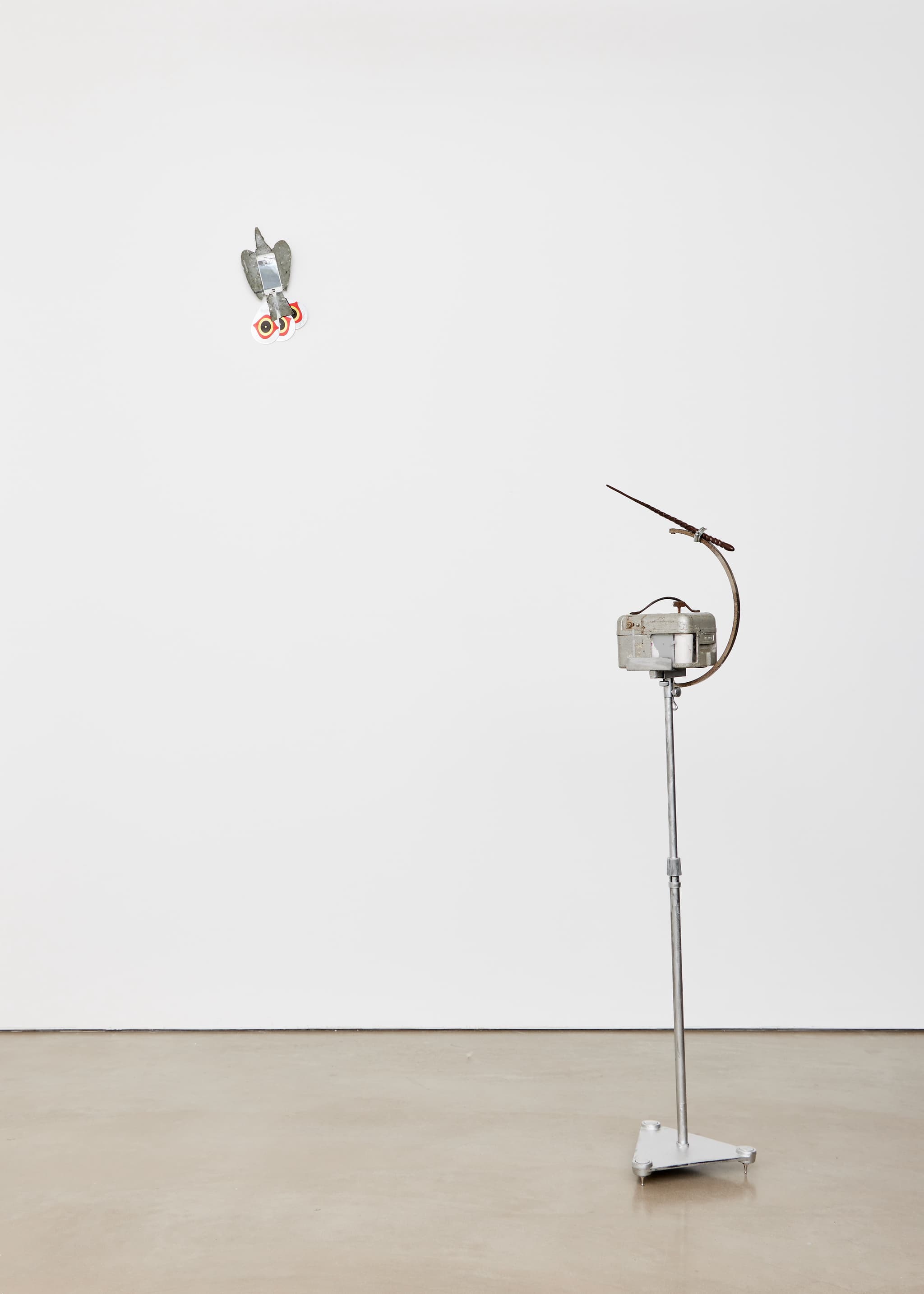Tamperproof pigeon racing clock, steel globe stand, wooden replica Cho Chang wand, plastic pigeon determent hanging eyes, metal pigeon predator replica and broken iPhone screen
