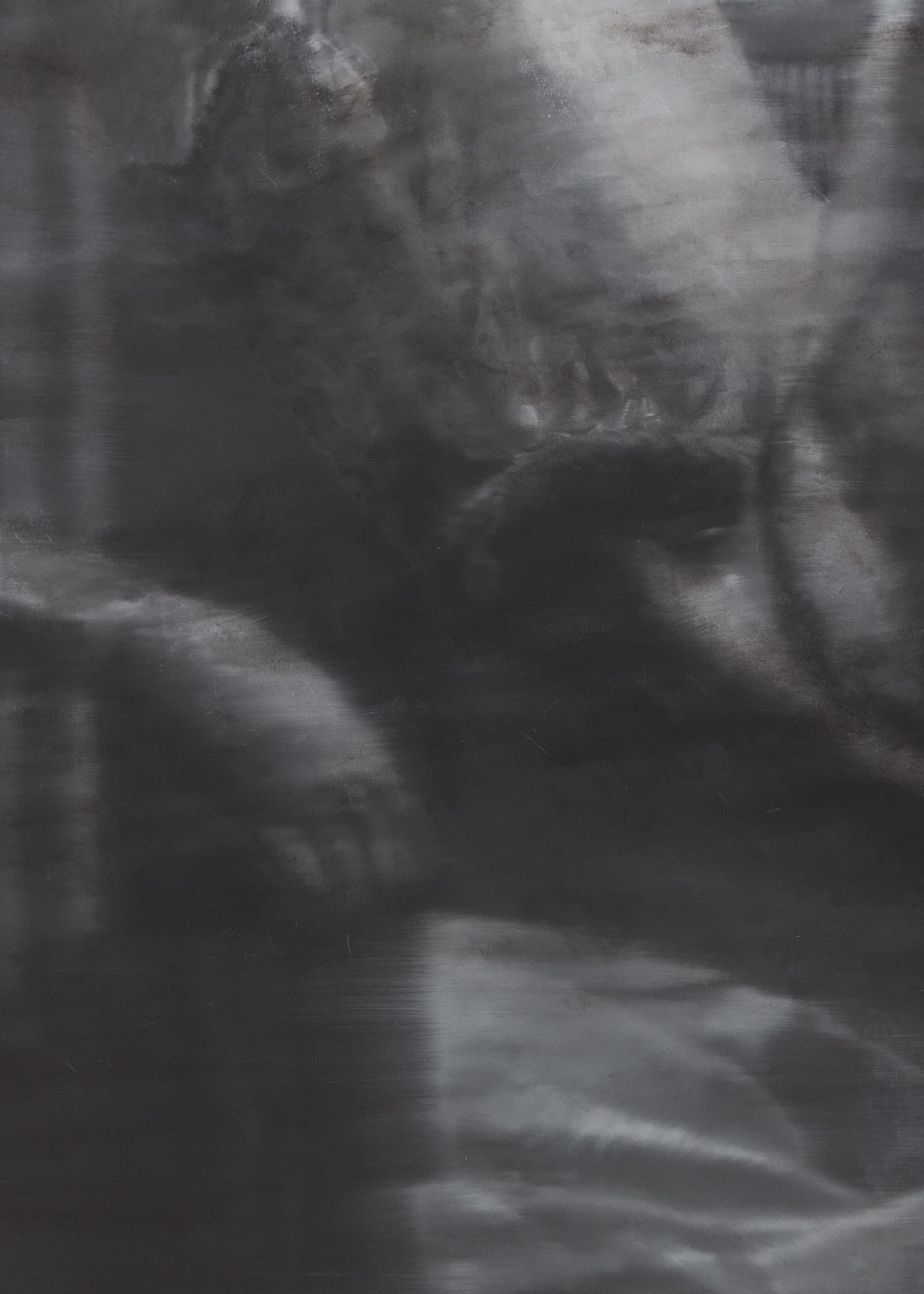 The artist builds each composition on top of an underpainting, creating an “infrastructure” that he considers essential to the experience of the work, despite being unseen. This is then followed by a meticulous and detailed rendering of his subjects, which is distorted through the addition of multiple glazes that disrupt the final image. The paintings in the exhibition react against the slick surfaces of contemporary technology and reflect Gordon’s investment in acts of attention, encounter, and emotion. The works are both formally and conceptually layered and exhibit the familiar yet alienating atmosphere so central to his practice.