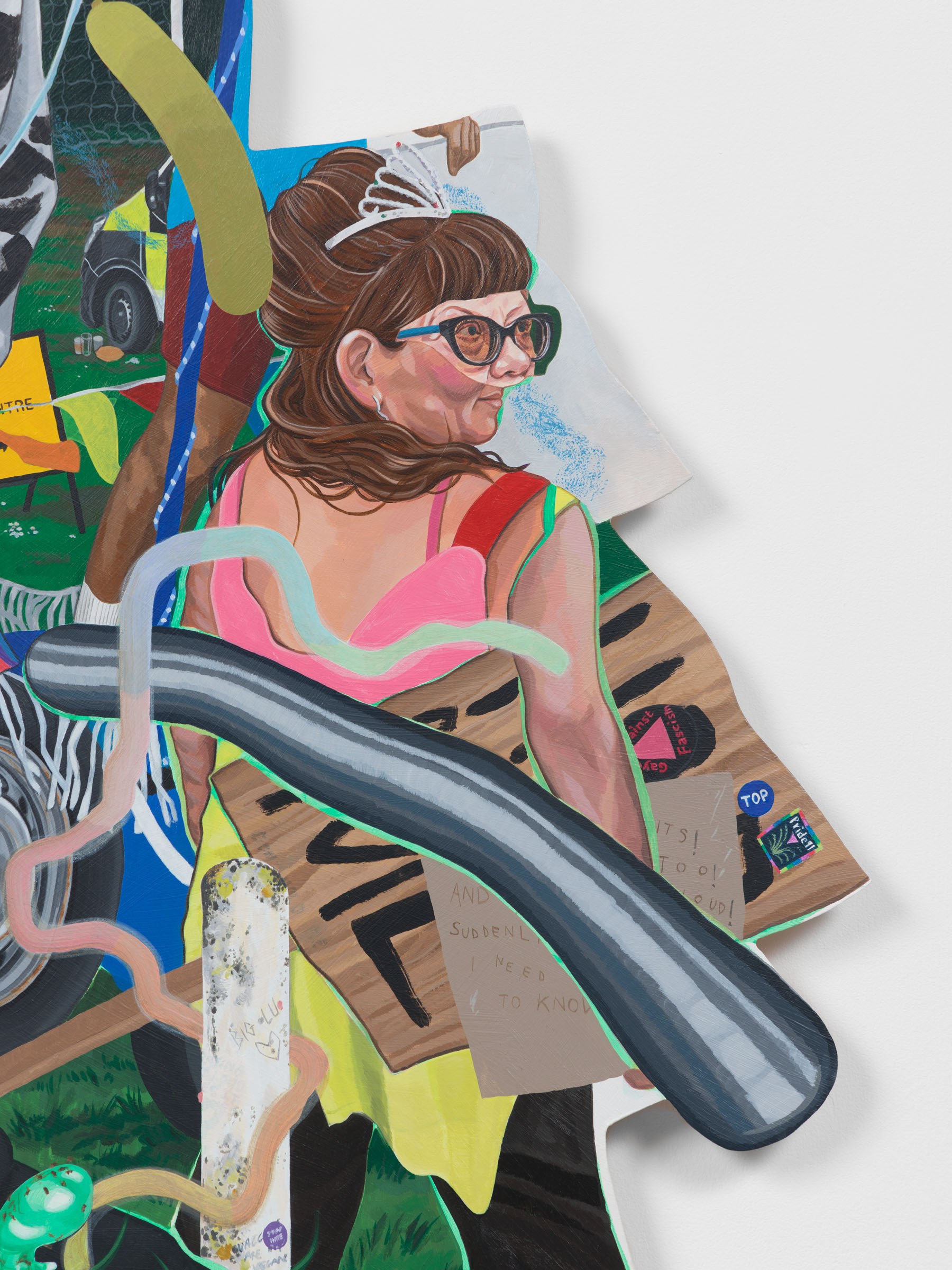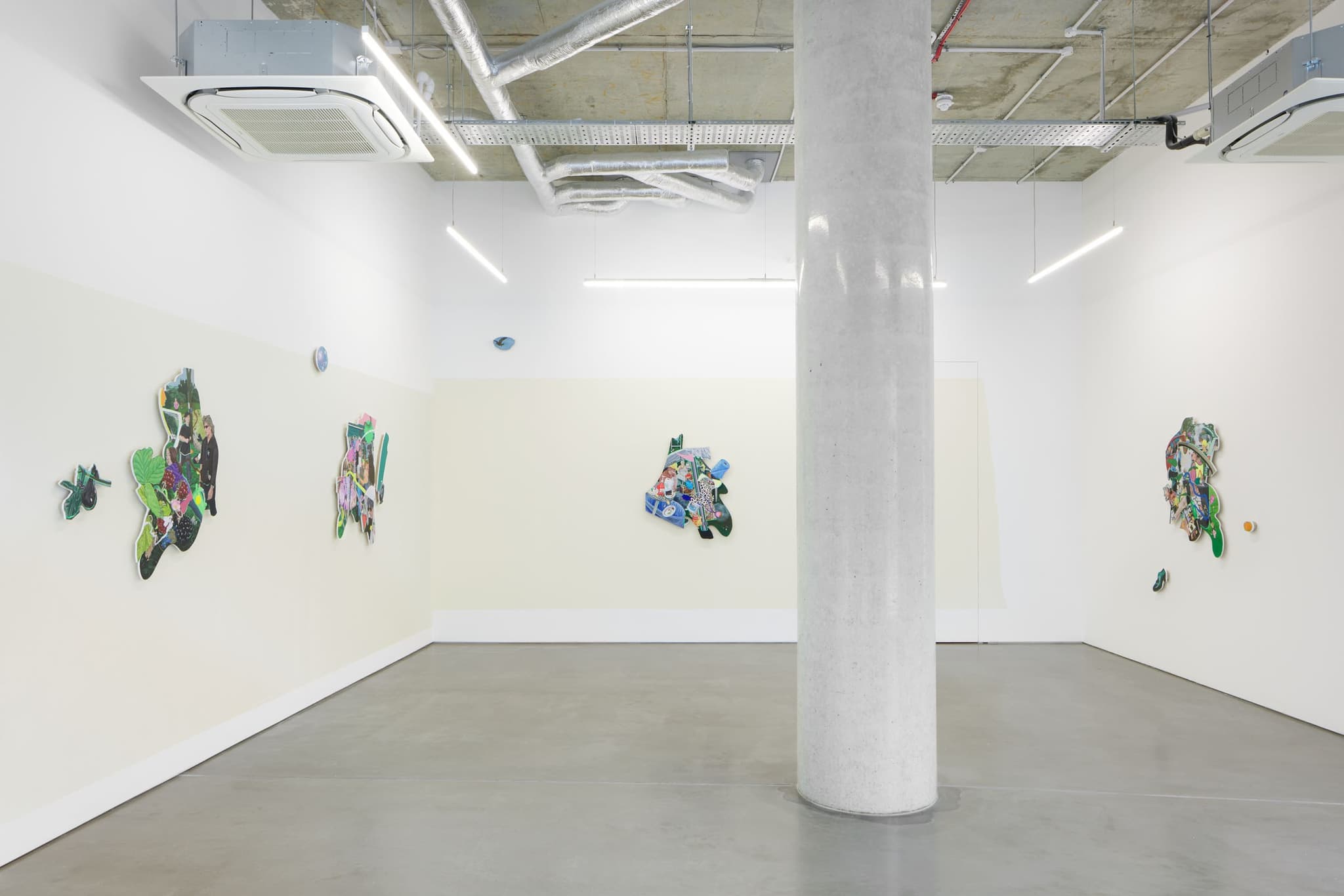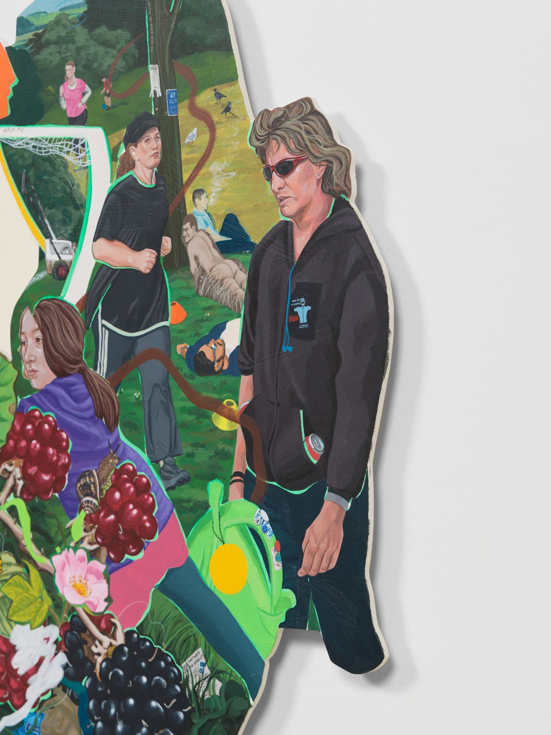 In their second solo exhibition with Project Native Informant, Cornwall-based British artist Flo Brooks (b. 1987) presents a new series of paintings and, for the first time, collages. Continuing the artist’s previous investigations into the aesthetics and politics of space in a climate of increasing commercialization and policing, these new works pivot around the archetype of the recreation ground, and the different ways that people make use of these communal spaces. Each work is part of a wider whole, depicting characters and scenes that together develop a critical narrative of public space and what it means to belong.