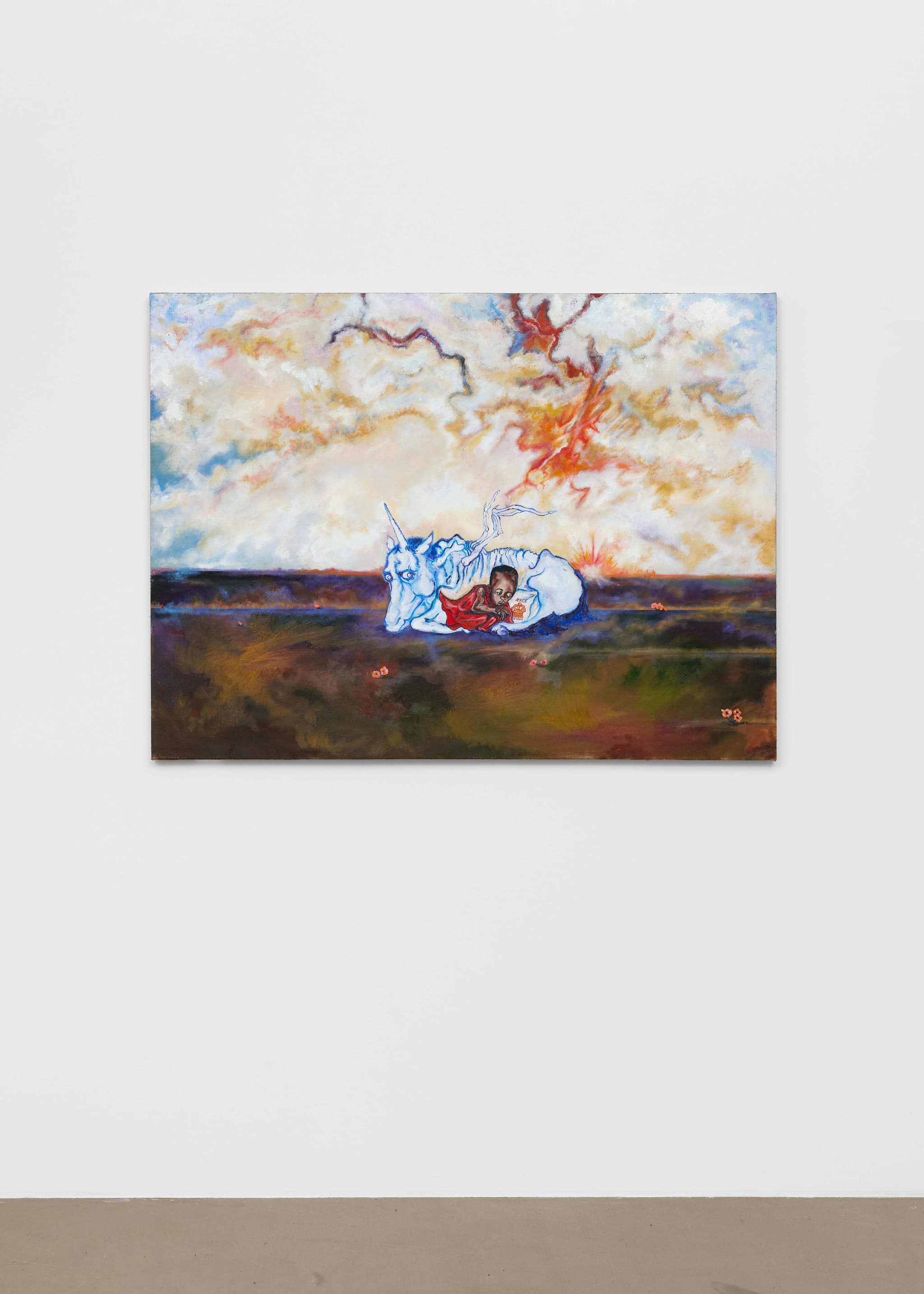 Sikely’s canvases echo and incorporate art-historical iconography, comics, manga and video games. The poetic cadence of his works, with their vibrant compositions suggest a complex negotiation of identity within the contemporary digital landscape. By appropriating imagery from manga and anime into traditional oil on canvas, Ibrahim blurs the boundaries between the digital and the analog, challenging established hierarchies of representation, navigating the intersections of struggle, justice, trauma and healing.