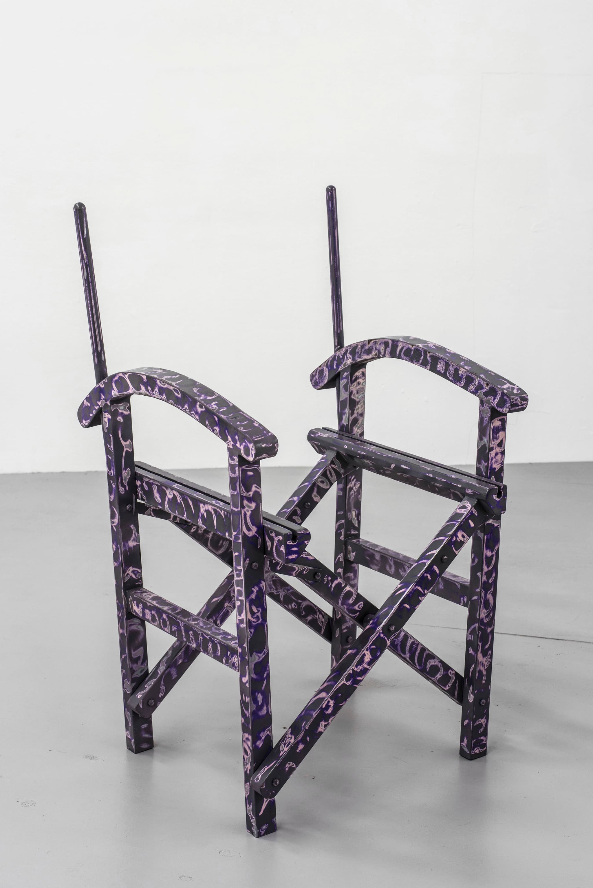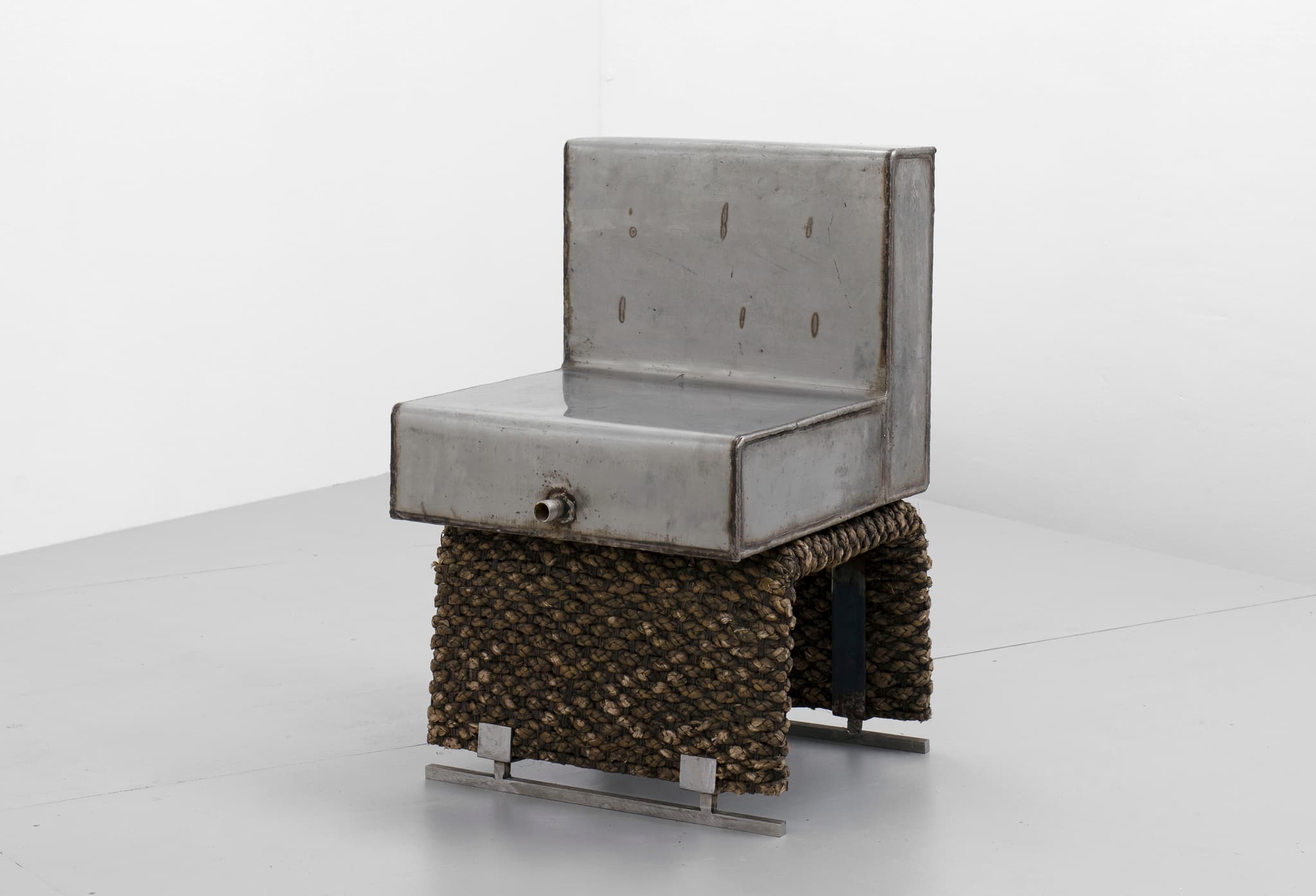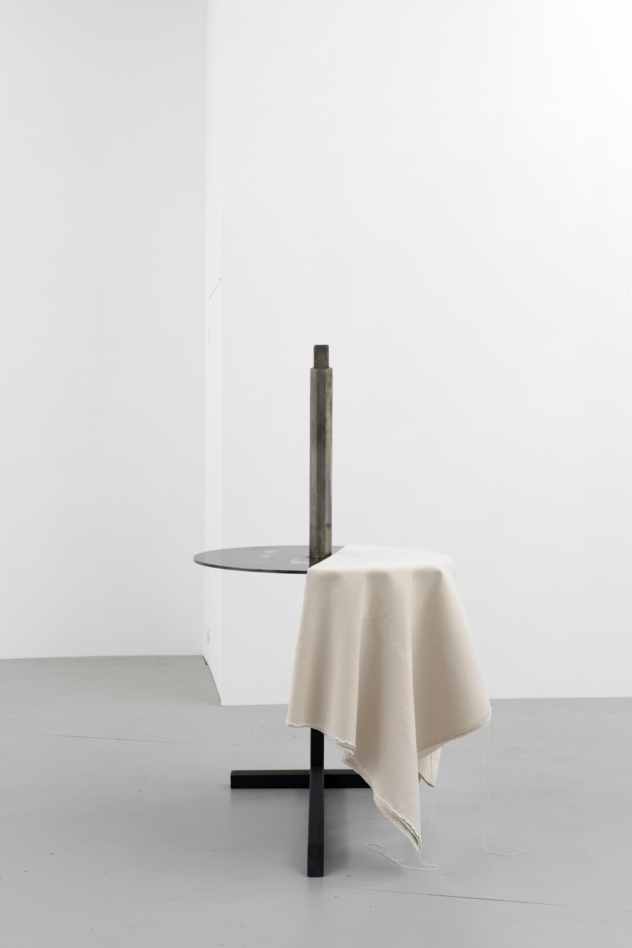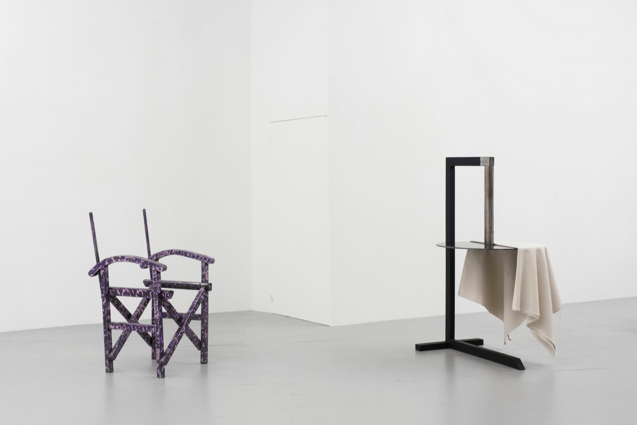 The exhibition "Cordyceps Gaud Adversary" places a strong focus on Kanu's efforts to undo the immobilization associated with art objects. Through a stage display, all of his sculptures are involved in a scene whose plot is left undefined. The objects' slippery status, somewhere between prop and actor, jolts the works from their dormant, accumulative order. Kanu further reinforces this tendency via the processing of discarded materials and functional values, each of which provides the objects with possible historical reference points while massively enriching their symbolic and fictional potential. More generally, Kanu intends an allusion to possible use values or the support of certain functions of objects, without excluding other possible oscillating forms of the objects. Underpinning this singular sculptural practice is the latently aggressive tension between the interrelated topoi of 'labor' and 'property' that is articulated in each of Dozie Kanu's works.