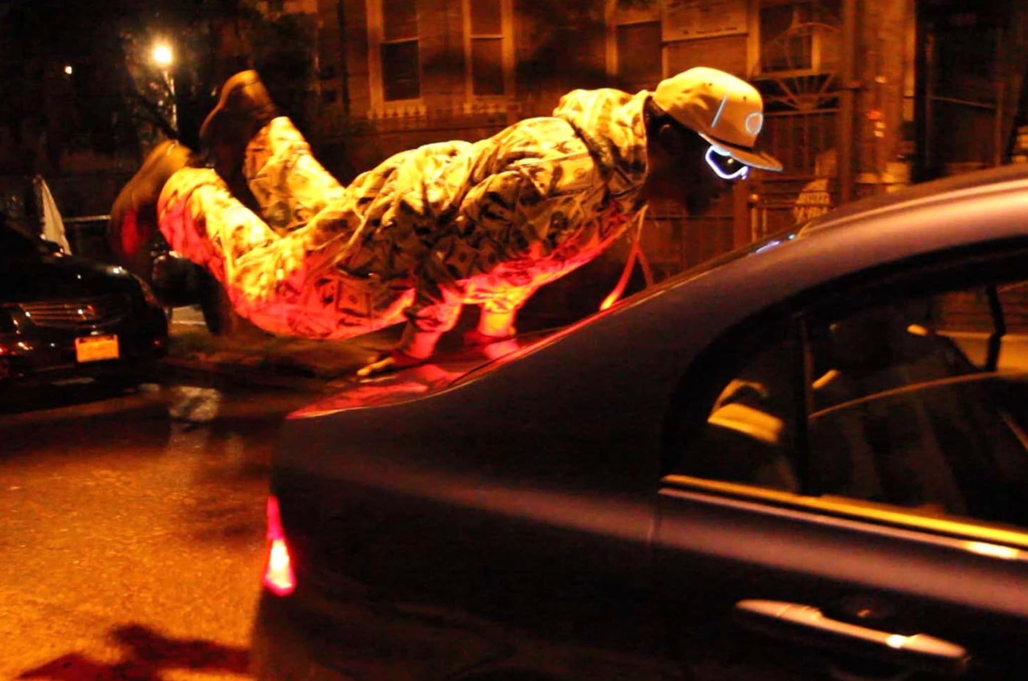 “Flexing,” “bone breaking,” “pauzing” and “connecting” in nighttime streets, hotel hallways and a posh Park Avenue apartment, the dancers improvise scenes suggesting digital death matches, stop-and-frisk situations, and disorienting man-machine interfaces. Shot in the East New York section of Brooklyn around the time of Hurricane Sandy, Ditch Plains free-styles an abstract narrative about the fatal coupling of subjects and systems in a time of permanent crisis.