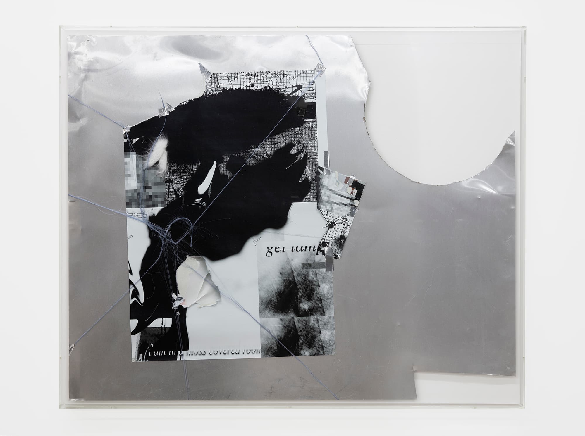 Clémentine Bruno works with paint through the laborious application of layers of gesso — implying covered, veiled but constitutive presences. Soft landscape painting, previously presented under a different title, operates like a ready-made that had already had a function in the field of art. Total,too, is made from an existing piece, encapsulated for Tonus in a Plexiglas box, similar to a museum glass case, which gives the object its preciousness and validates its status as a work of art or an object of history. It’s not so much the literal thickness of their three measurable dimensions than the incorporation of their contexts of production, presentation and circulation that makes these works, including paintings, sculptures rather than images.