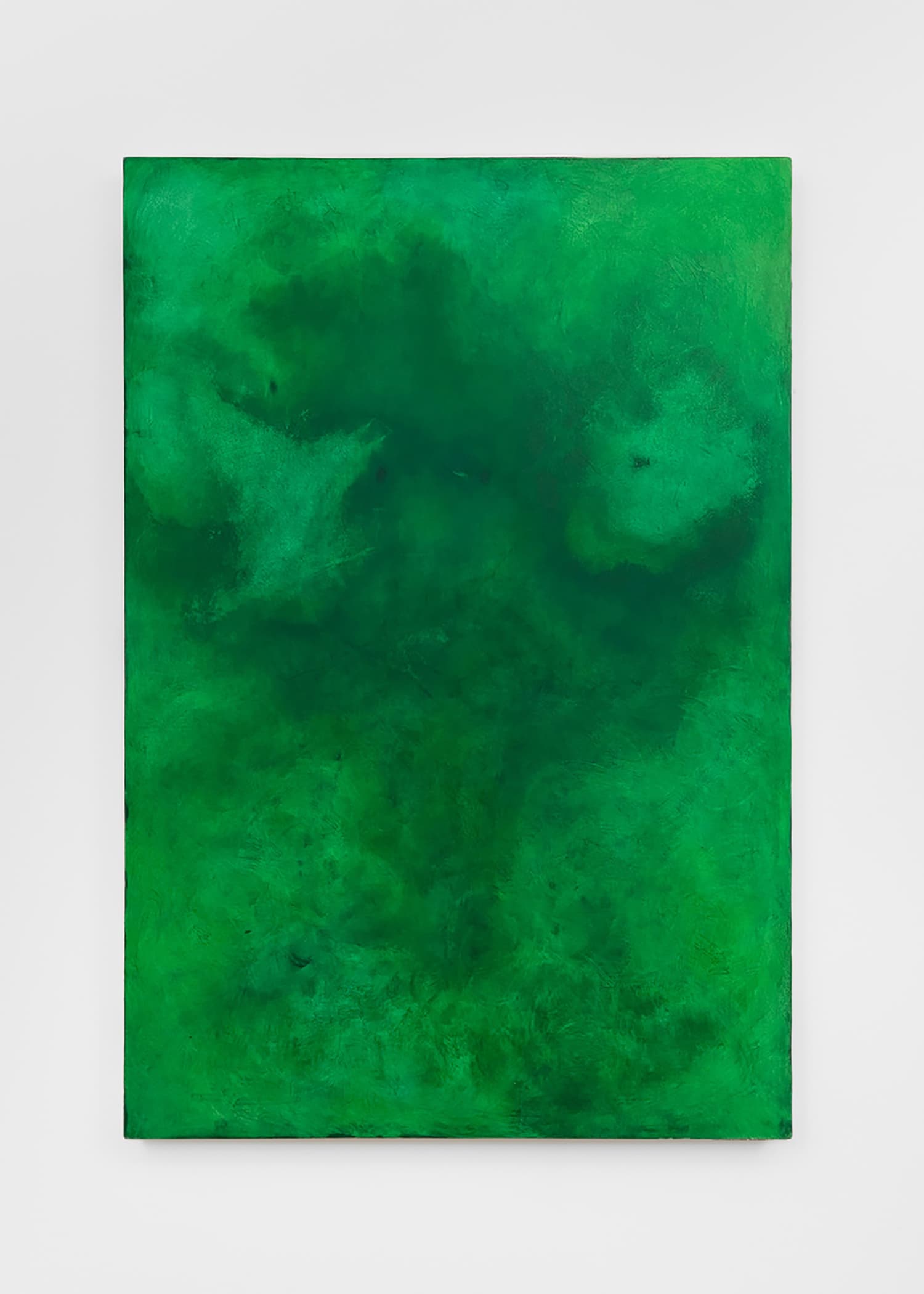If, through the titles, the three paintings are presented as landscape paintings, the coherence of meaning dissolves. Unlike that in Landscape, brown star,the comma in Landscape, green stain insinuates doubt as to the subject represented. The indeterminacy gives us back our freedom of interpretation. It also insists on the minimalist form of the representation — whereas Soft landscape paintinginsists on the medium and the artefactual nature of what we are looking at: not a landscape, but a landscape painting.