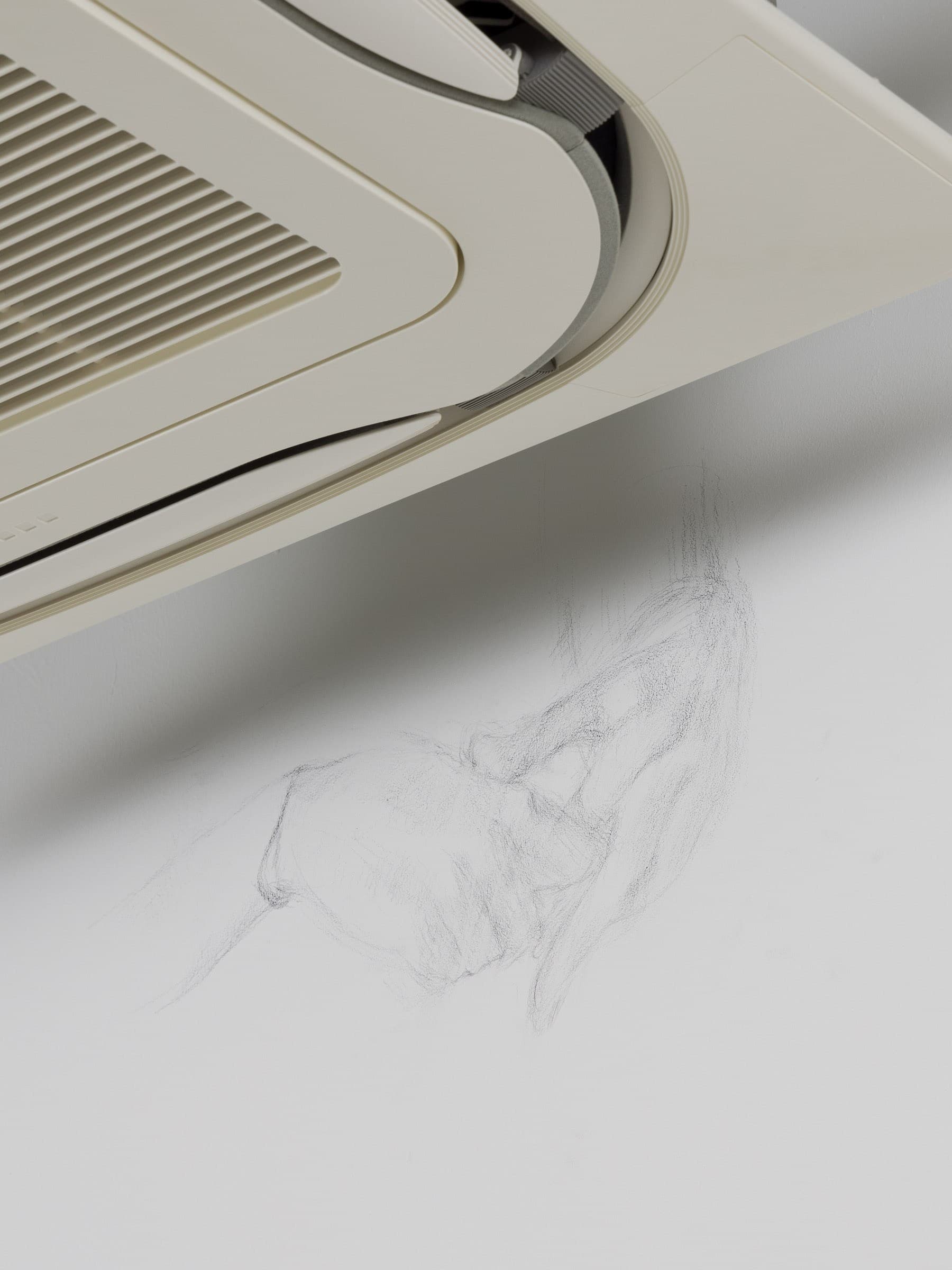 Alongside the paintings, Bergfeld has made a site-specific wall drawing that includes Wichmann’s hand gestures and objects such as an empty plastic bottle, signifiers of the duration of the process and time spent together. The palette of the exhibition takes on the metaphorical weight of the rain and floods that have recently affected the Nord Rhein Westfallen region of Germany resulting in a body of work that is psychologically charged and reflects the full spectrum of emotions experienced between the two.