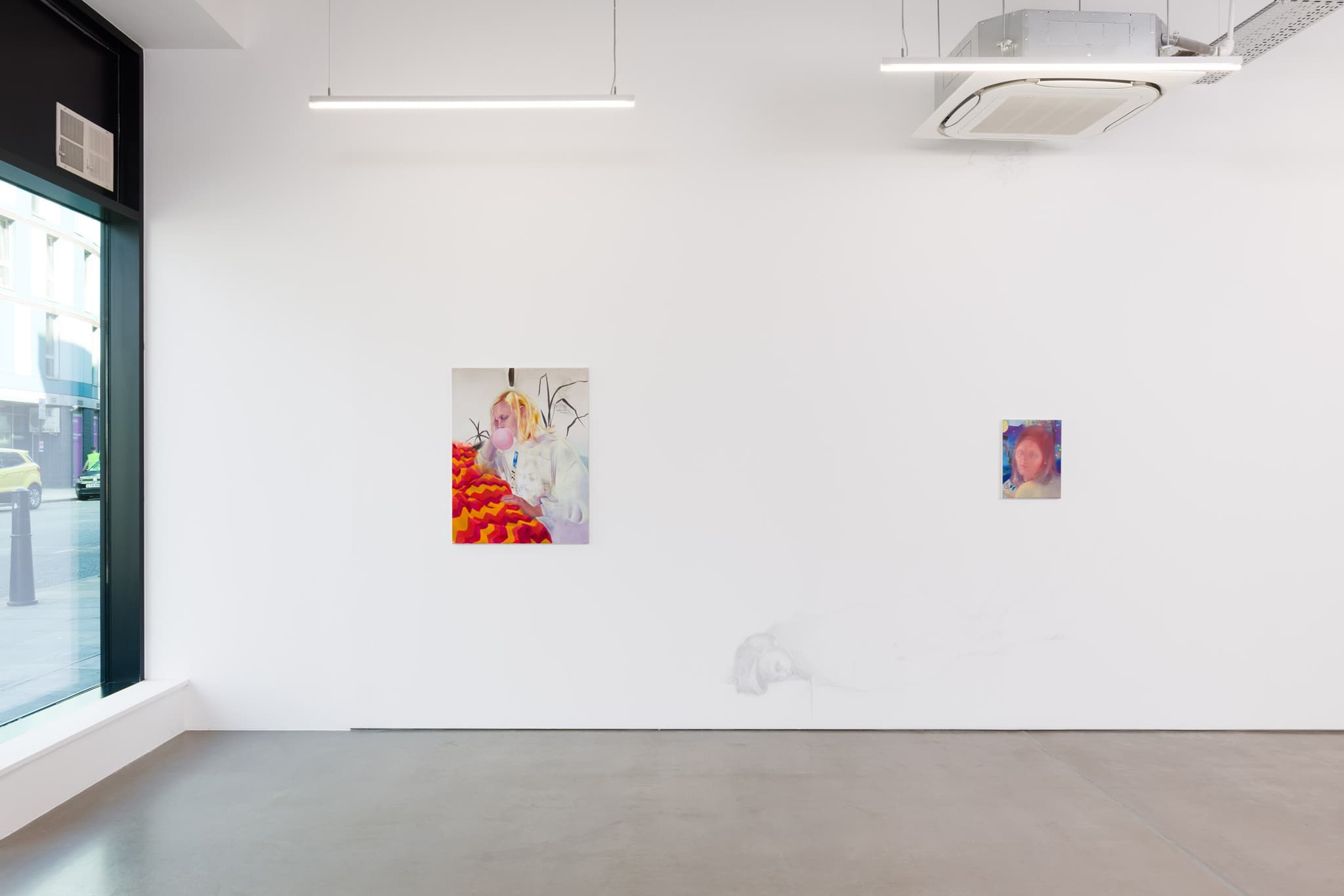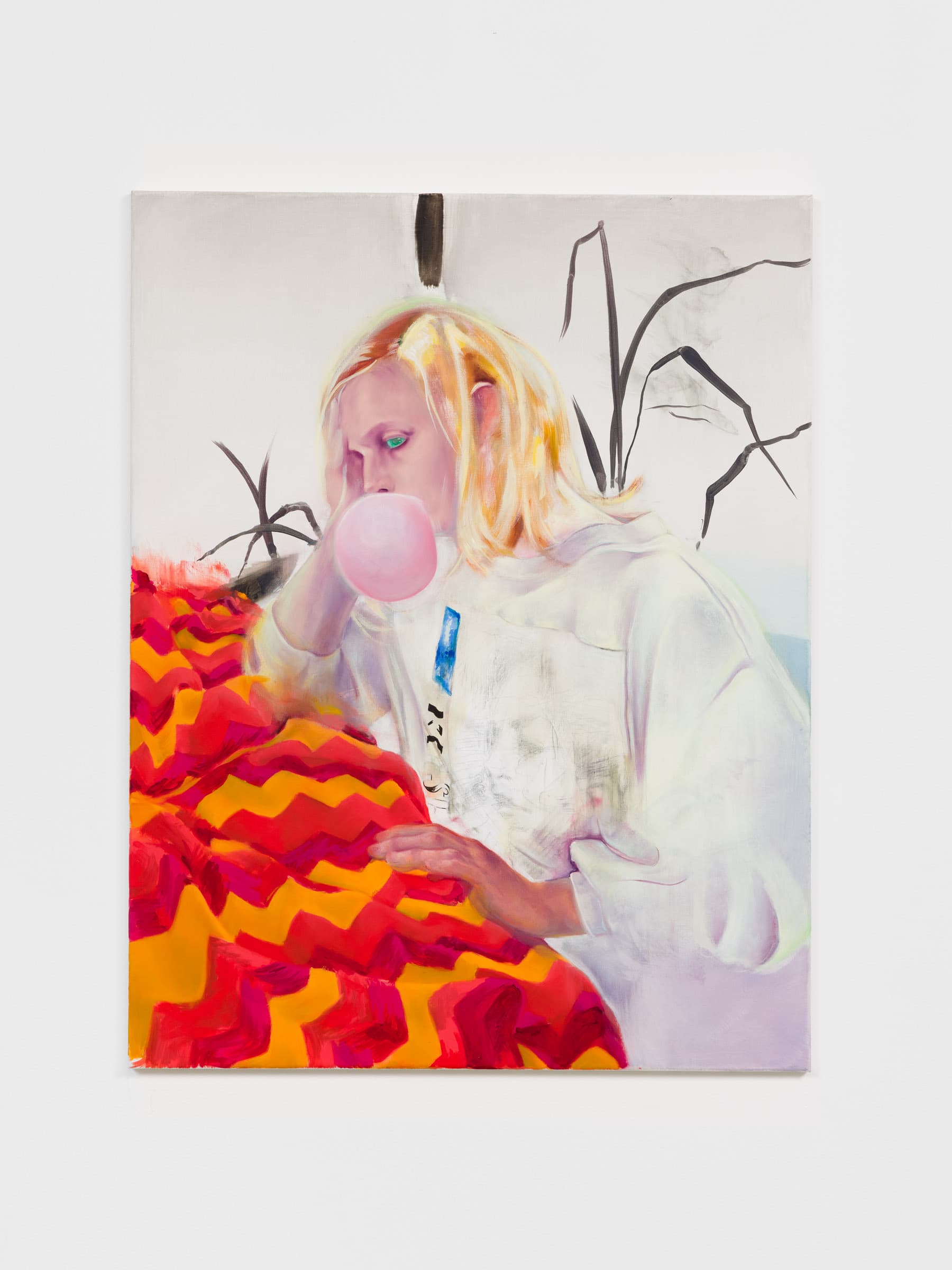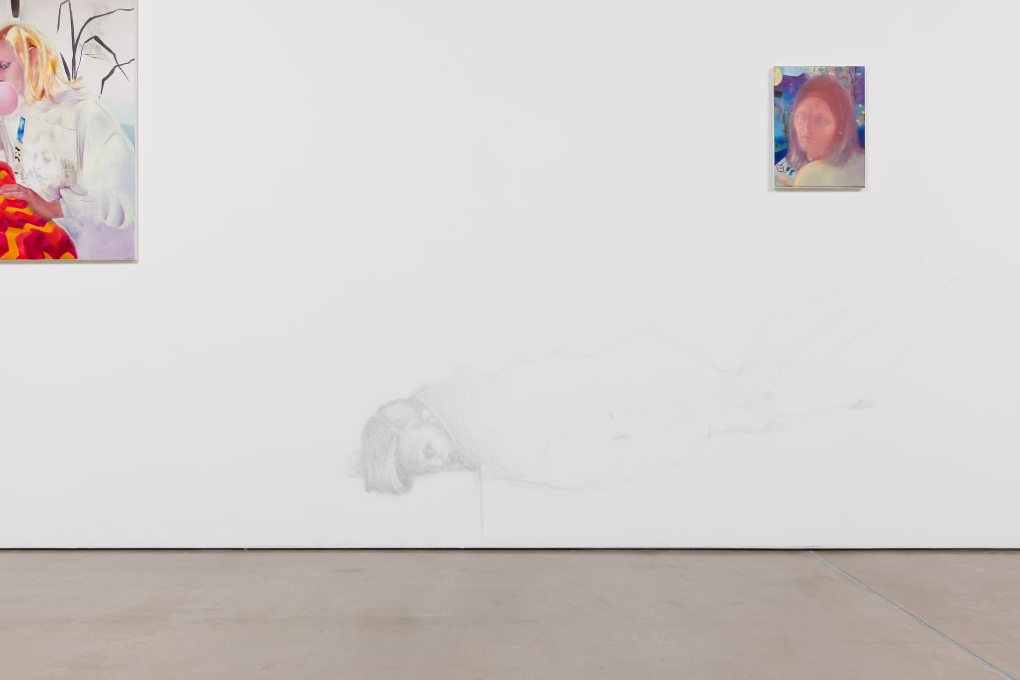 There is a long history between the artist and subject, fraught with power imbalances and exploitation. Bergfeld and Wichmann were acutely aware of this and sought to deconstruct and subvert the traditional notions of “artist” and “muse”. Rather than prescribing certain poses, a specific scene or composition, Bergfeld was lead by the randomness of their interactions, resisting the desire to impose order. All of the paintings in the show have a different format, a conscious decision to avoid any reference to scalability, and to respect Wichmann’s subjectivity.