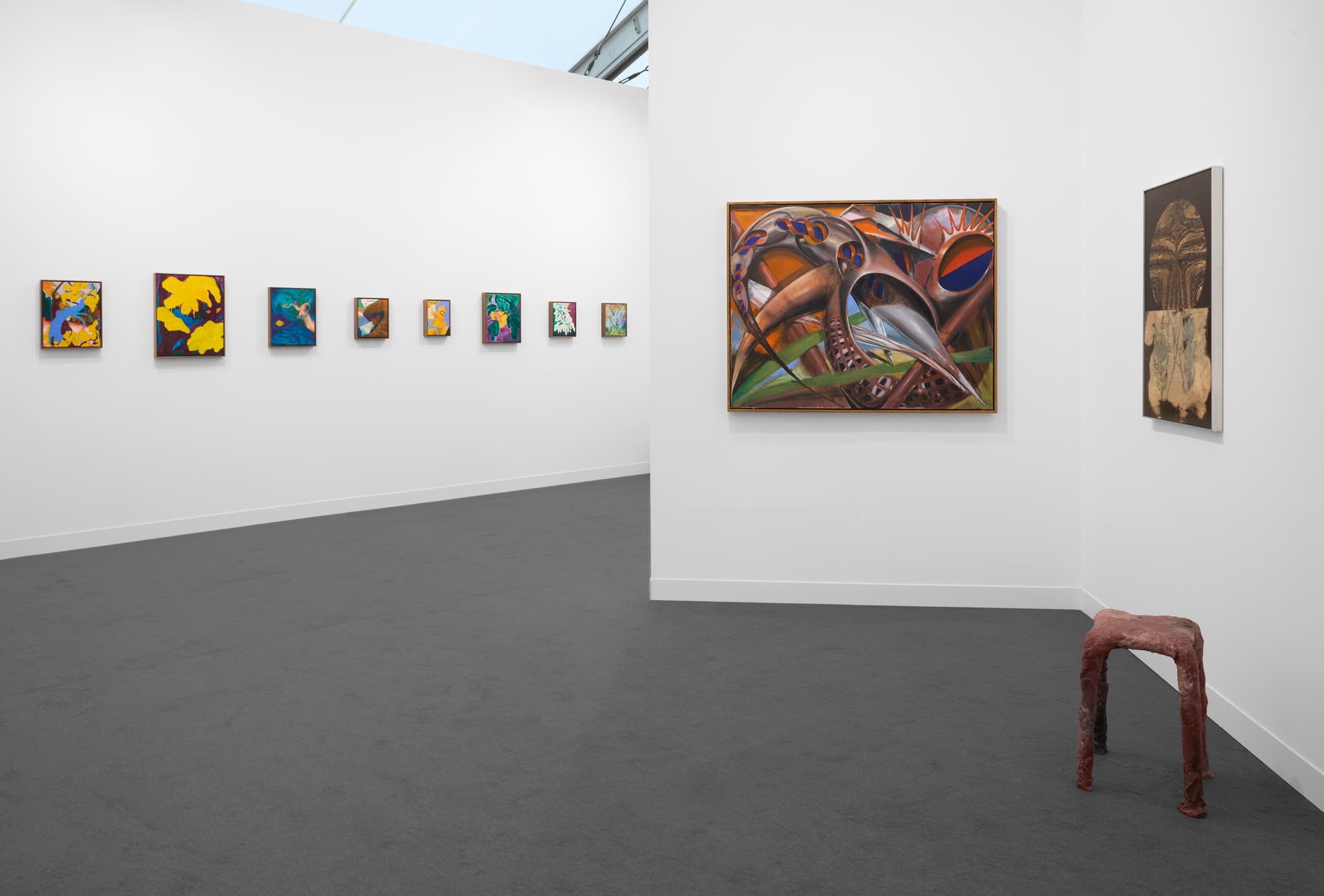 Sean Steadman (b.1989) is first and foremost a painter. He is invested in the medium’s specificities and its ability to draw out new visual forms. There are two major influences at play in Steadman’s practice: a deep understanding and respect for the history of art and an expanded view of nature, inclusive of both the biological world, and broader abstract concepts such as mathematics, culture and technology, that underpin existence. Steadman makes works that slow the viewer down and take time to unravel. His works are diametrically opposed to the culture of “reading” images and photographs so prevalent in the current image economy. His paintings take time to fully experience; they marshal space, even if their structures are utterly mercurial. They are dialectics of schisms, sediments, breakages, the pulverulent and protuberant of colour and composition. The forms that emerge warp and morph into one another, as if enmeshed in rhythmic (dis)symphony, ad infinitum. The resultant paintings act as portals into multiple dimensions and systems. They function as blackholes, teetering on the limit of cosmic space, born out of chaos and order. For Frieze London, we will show a selection of new mezzotints and paintings that were included in Steadman's first solo institutional show at Devonshire Collective, Eastbourne that opened earlier this year.