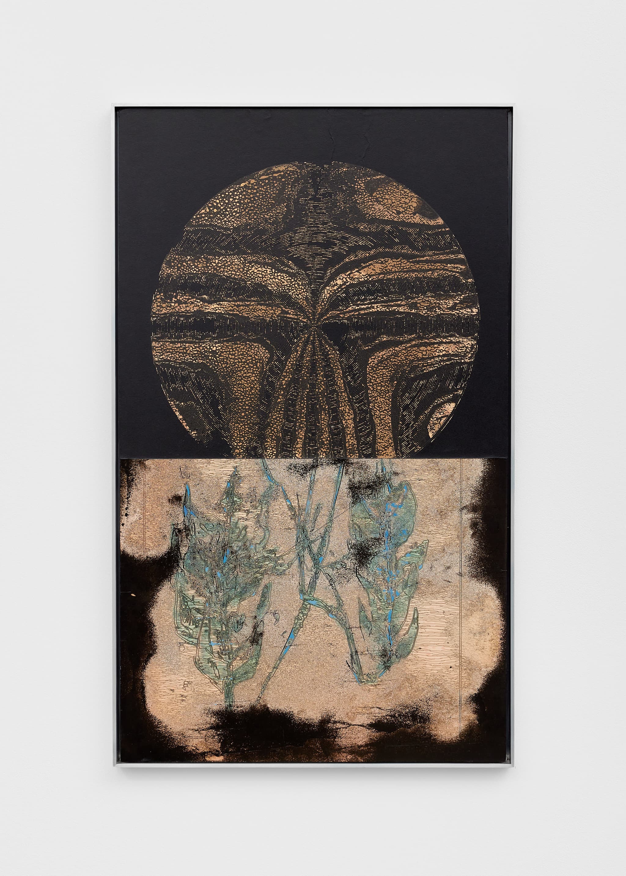 Unique chemical painting on silver gelatin paper, Flashe and acrylic mounted on aluminium in custom aluminium frame