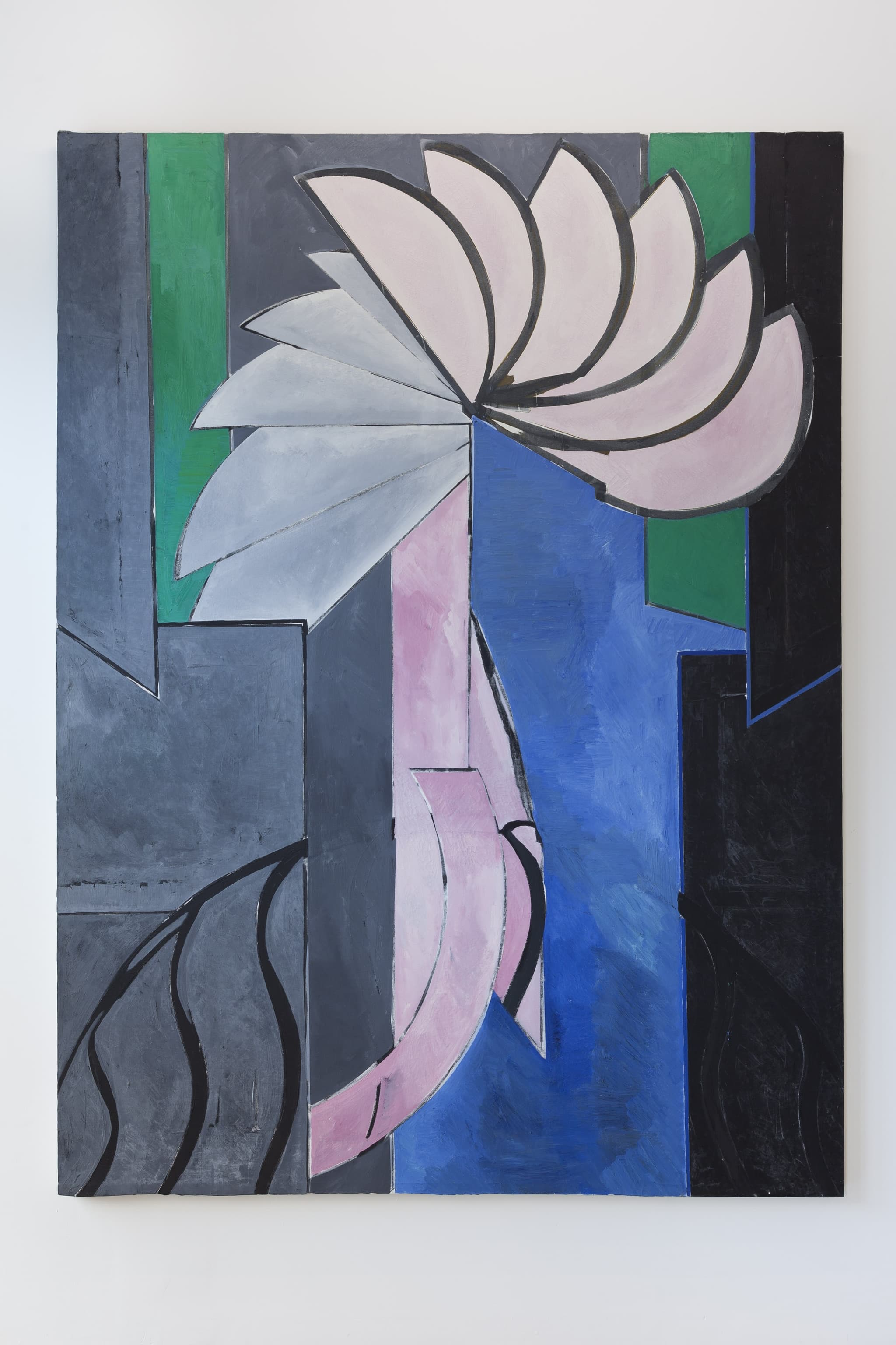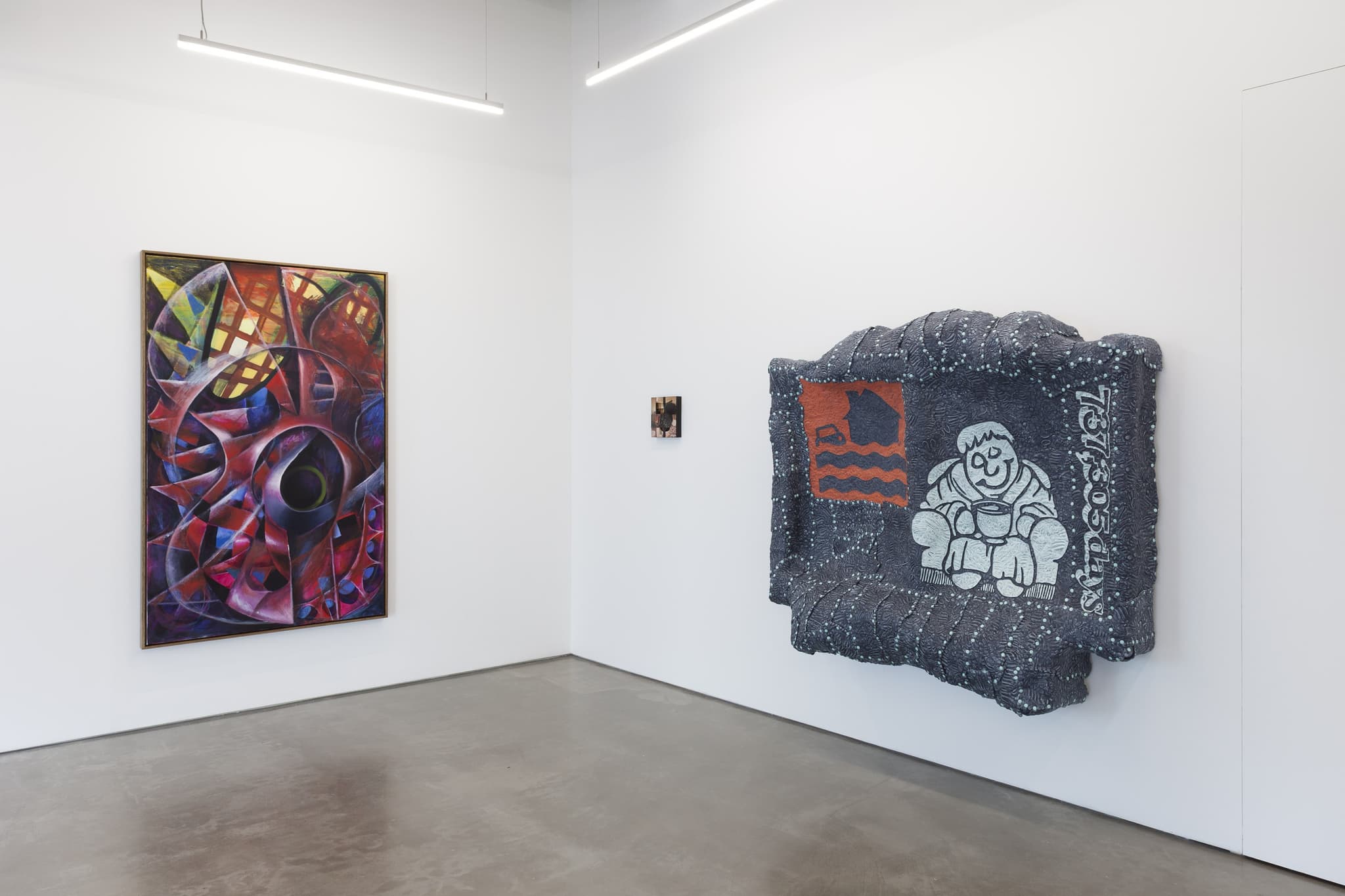 All of the exhibited artists in their different ways relate to this spirit of inquiry, and their ability to produce worlds and at the same time give the feeling of interiority. Sebastian Jefford’s bulbous foam skins, puckered and clipped together on volumetric supports, are like artefacts from the nanoscale, blown up for inspection. Jennifer Packer’s phantasms, faces agog, dissolve into spandrels and roots. All the works are uniquely chimerical, slippery and ponderous, and focus on the imagination.