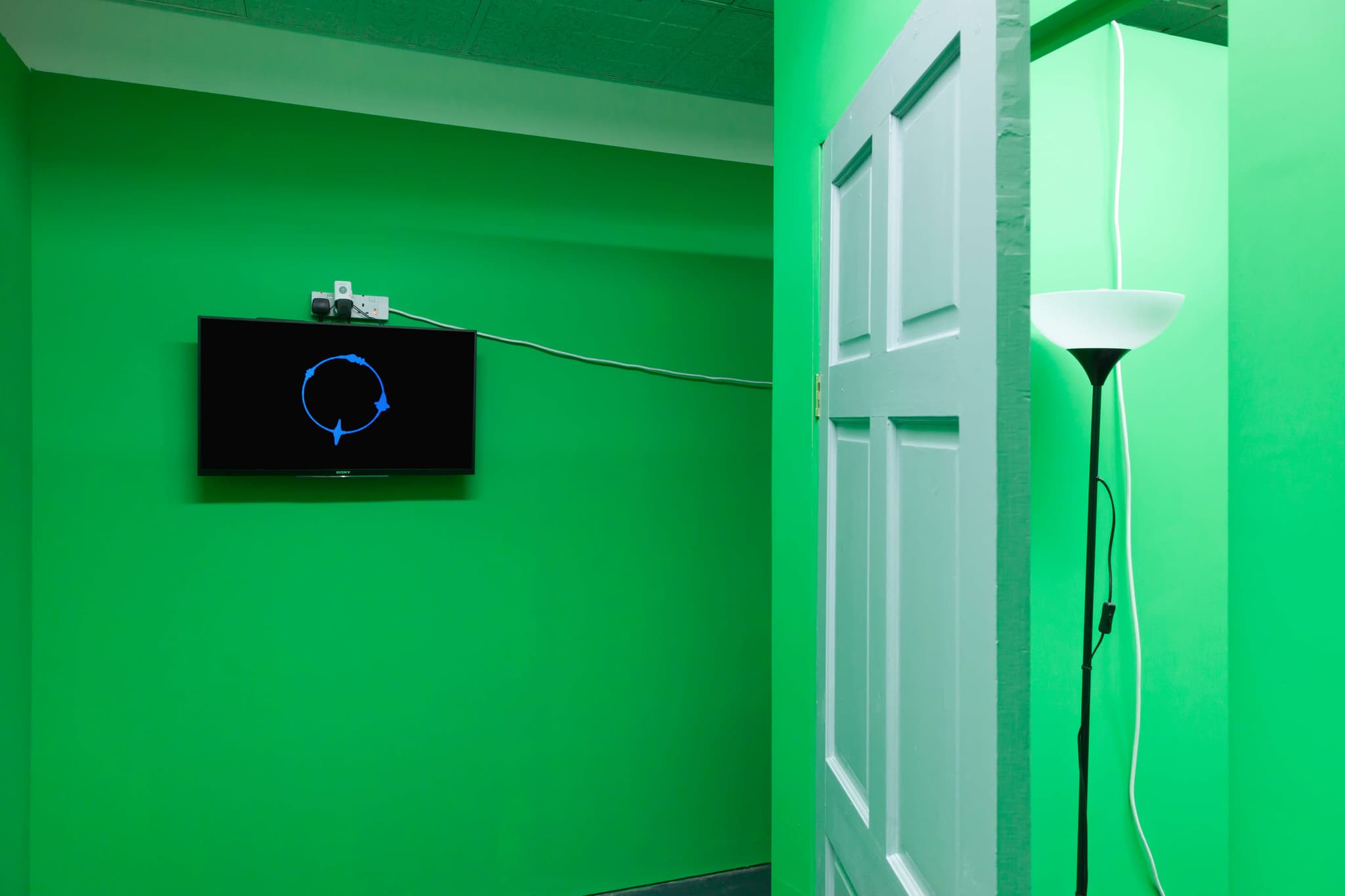 Here we go again, Morag Keil’s second solo exhibition with Project Native Informant. The current work is a simulation of a previous installation at Jenny’s gallery in Los Angeles in January 2018. It too consisted of a series of doors, walls, and portals to individual rooms with videos. The narrative of the videos uses home automation as a start point to either control the decisions made or facilitate them, inviting the visitor to play or have a conversation.
