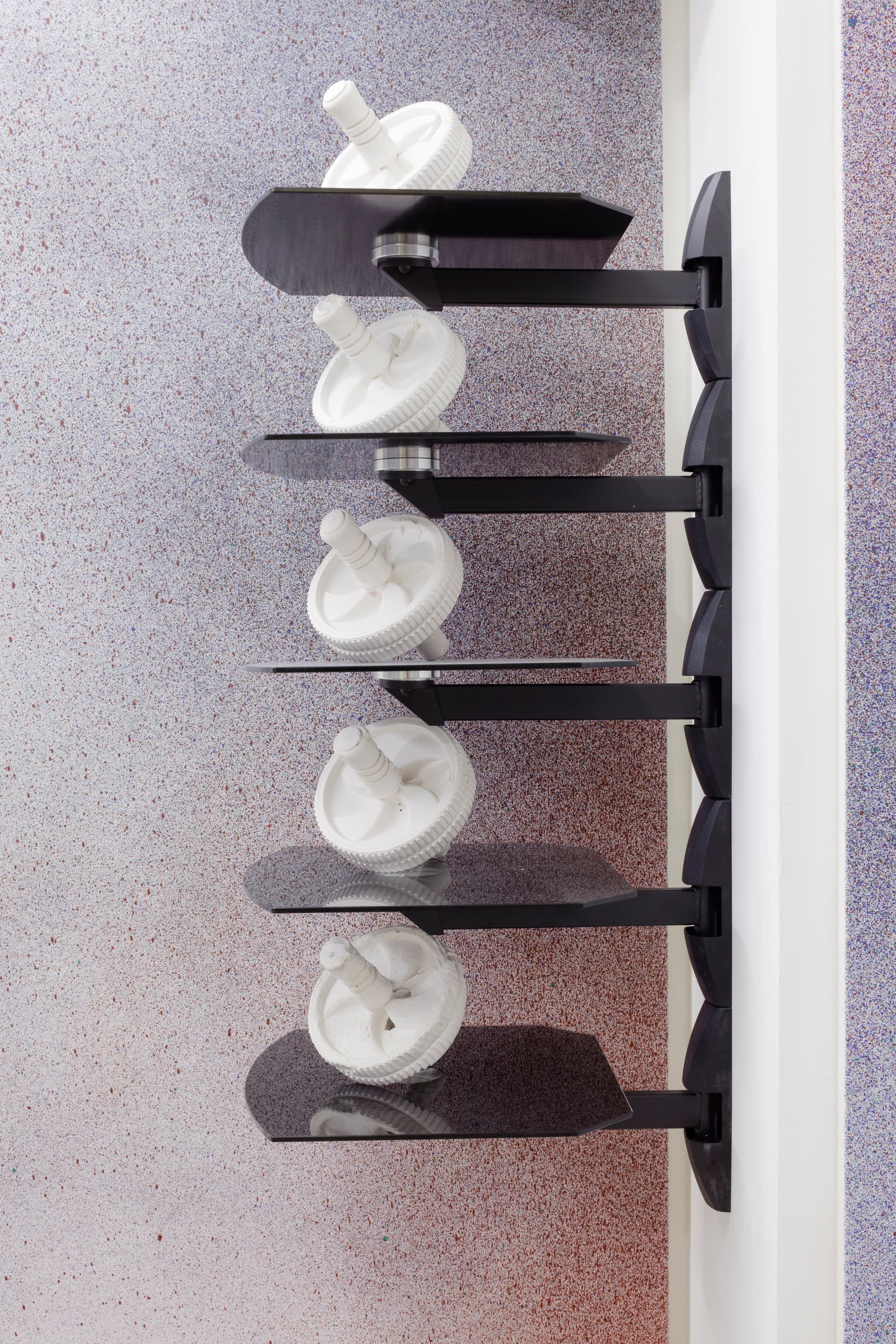 A bald waiter in all black appeared next to the table