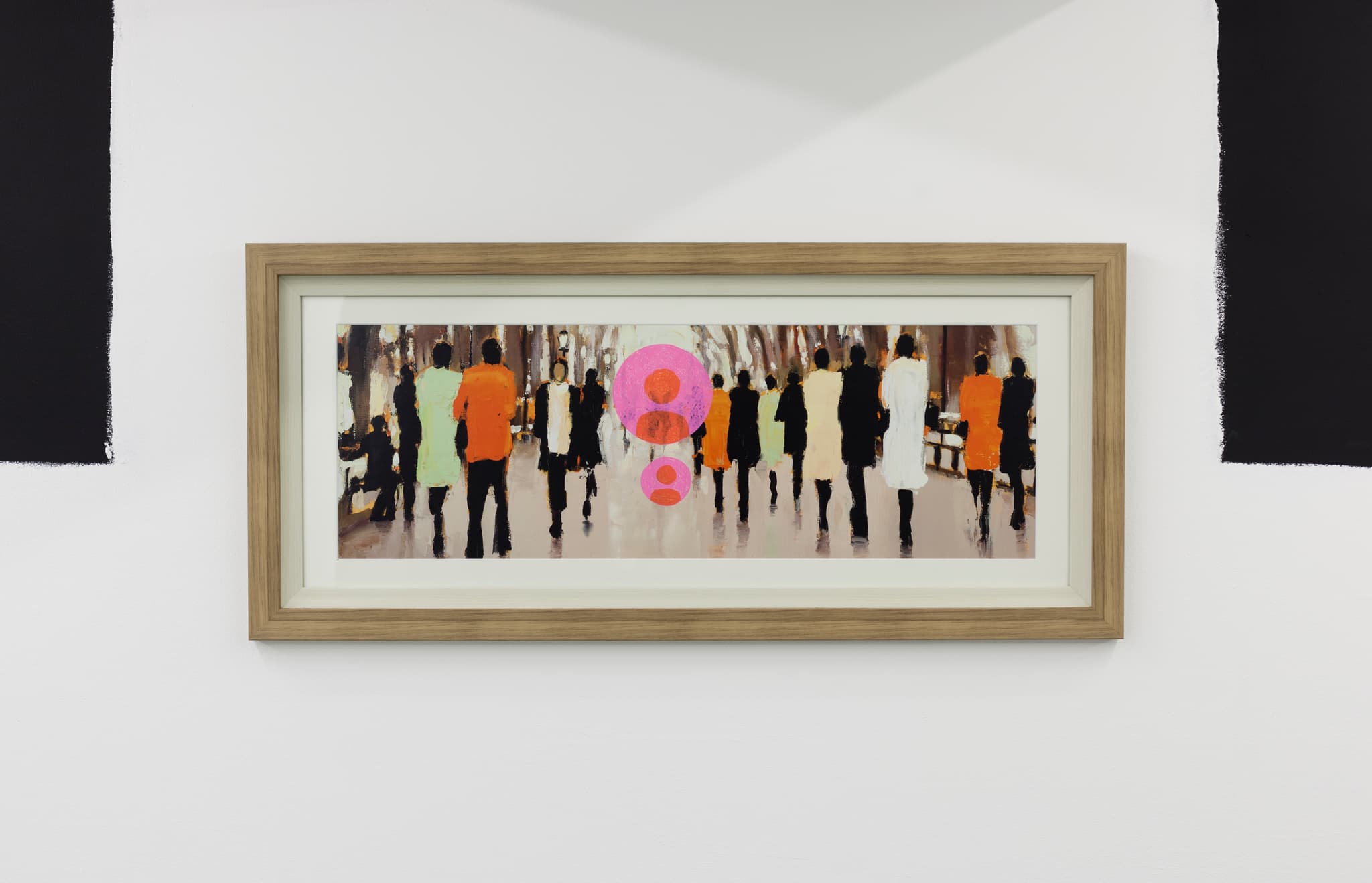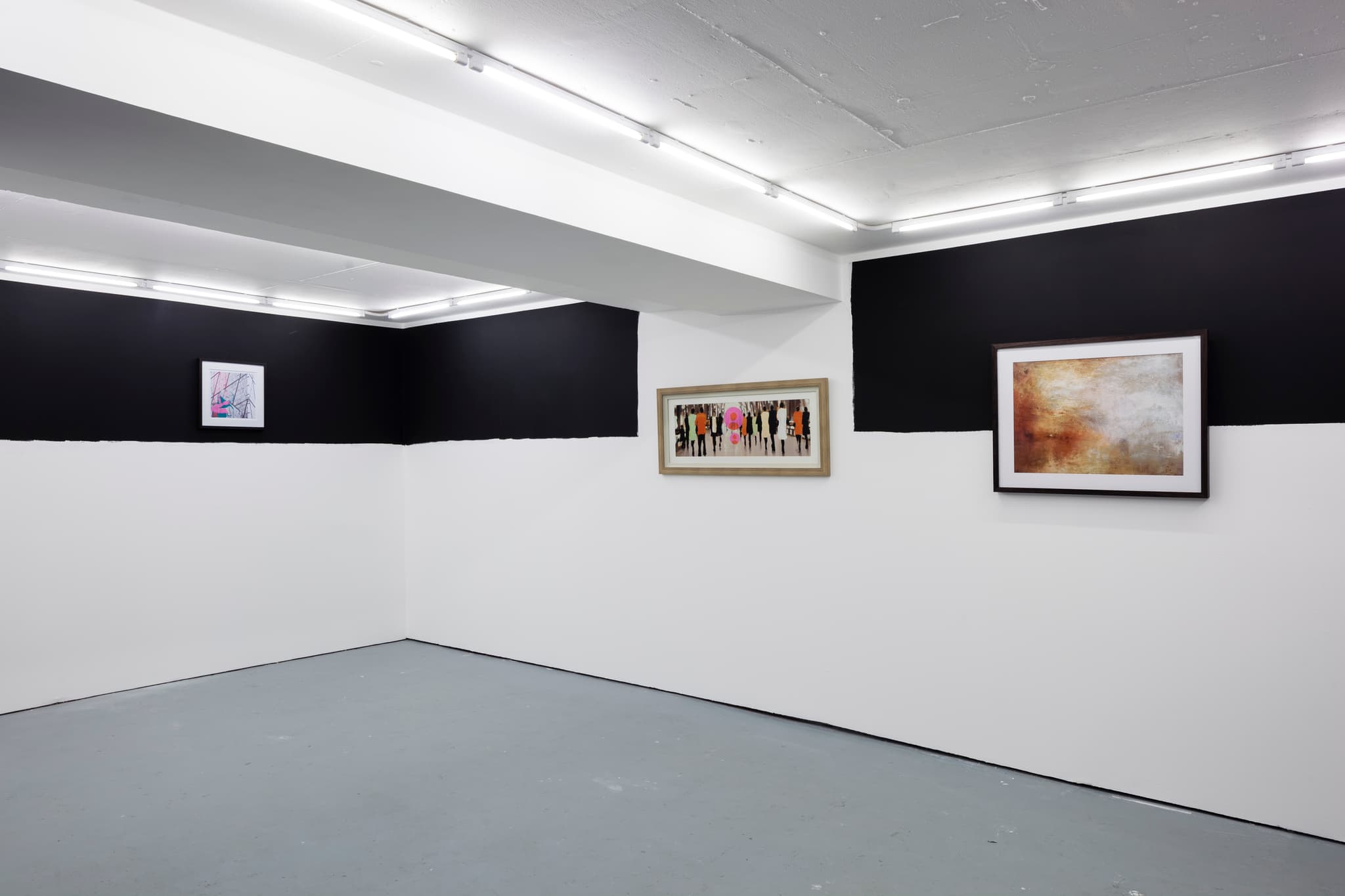 The necessity to repaint Project Native Informant in white – after it had been left black by the previous artist- gave Nicolas Ceccaldi the opportunity to perform an in-situ intervention directly on the walls; a 70% recovery of the original state which enhanced the gallery with a raw, degraded look. In contrast, the artworks on display are not only framed and small to medium in size, but also appropriated from a department store. Borrowing from Liz Jameson, William Turner, Lorraine Christie and Scott Dunwoodie, these pictures underwent both external and internal operations of détournement: first via recontextualization and secondly with the occasional addition of paint marker drawings. This succession of hygienic measures imposed out of necessity from above produces a festive feedback loop of reciprocal contamination and subversion.