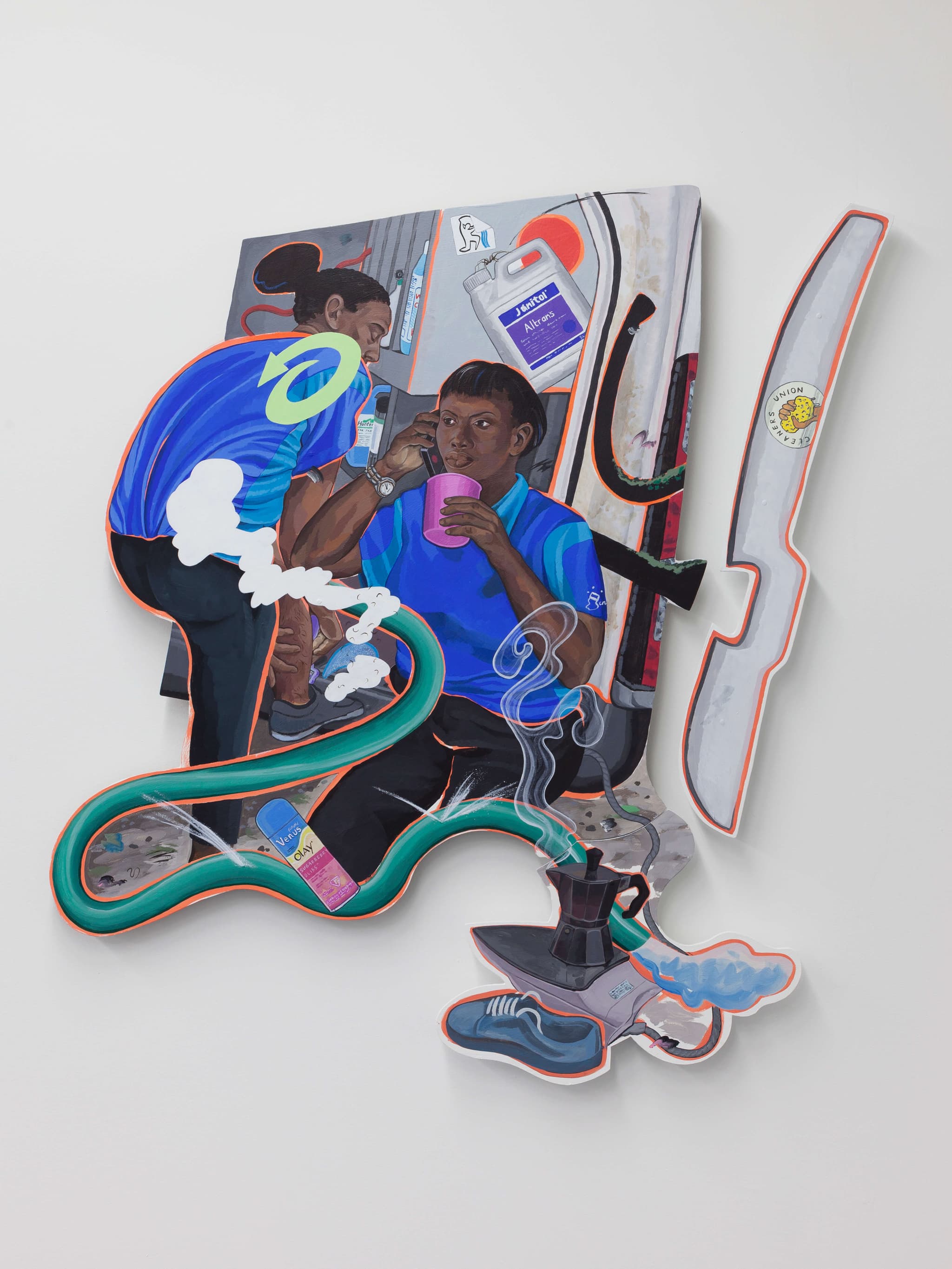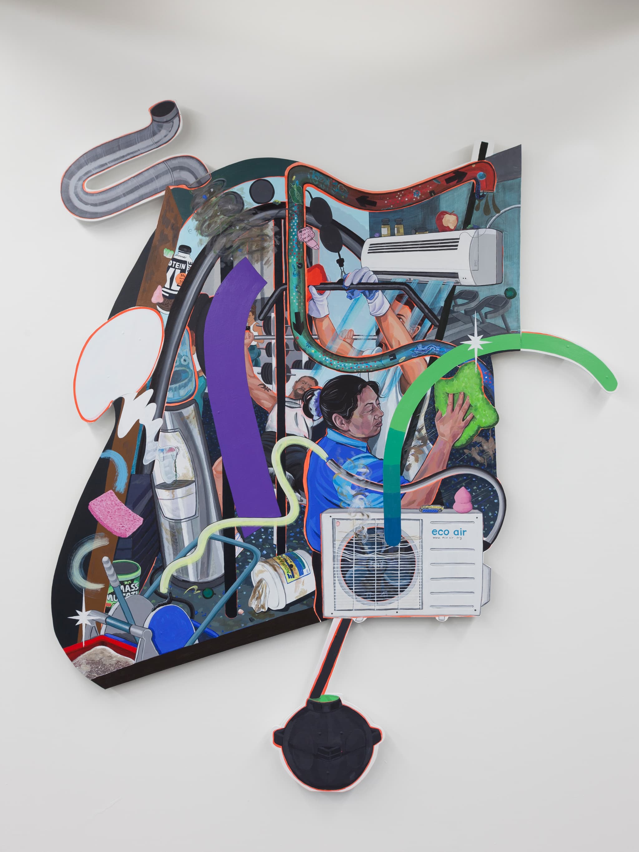 In a new series of acrylic on board paintings, the exhibition brings together notions of cleanliness, normativity and morality in a dramatized satirical fiction, exploring the ways the body is manipulated through the lens of hygiene.