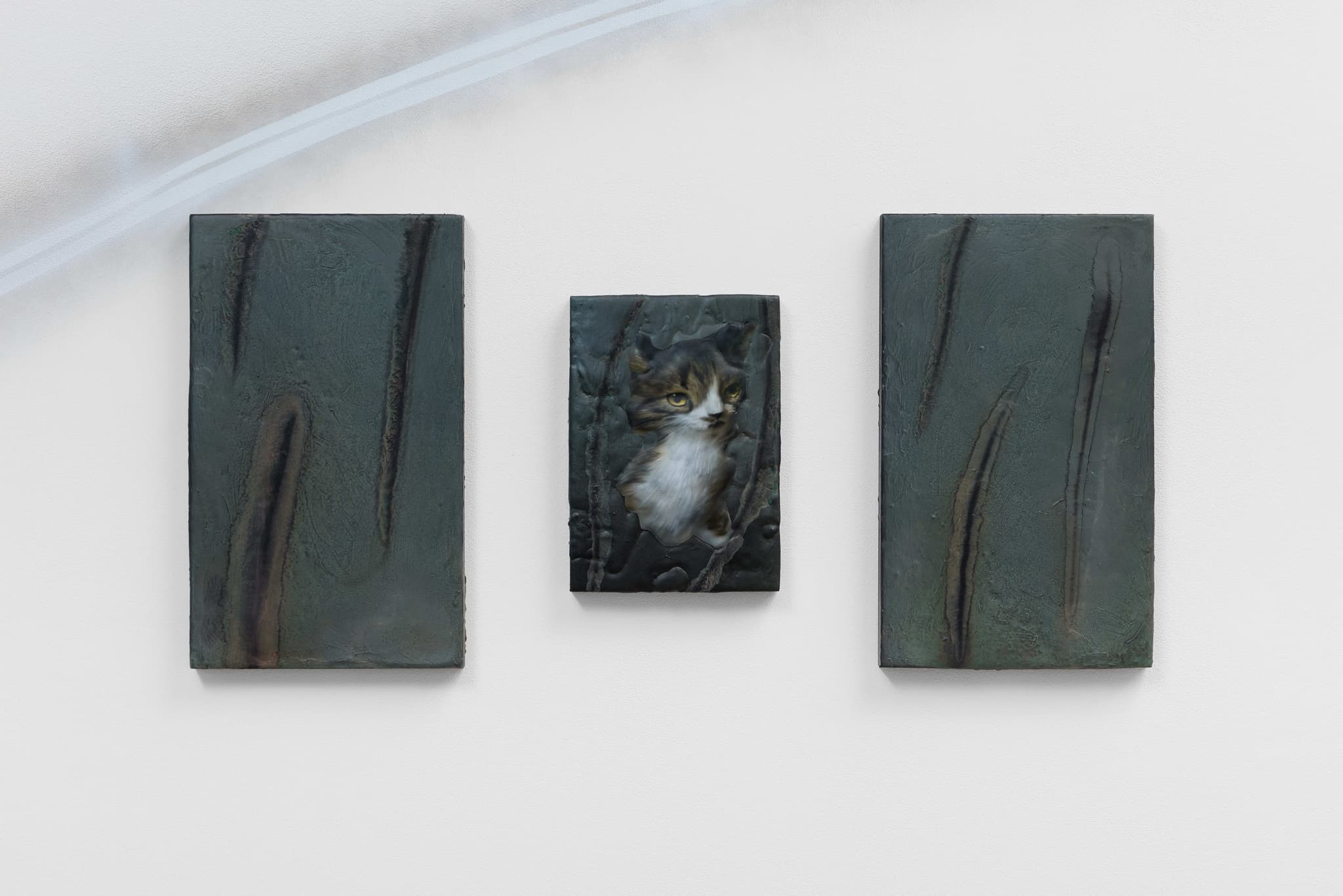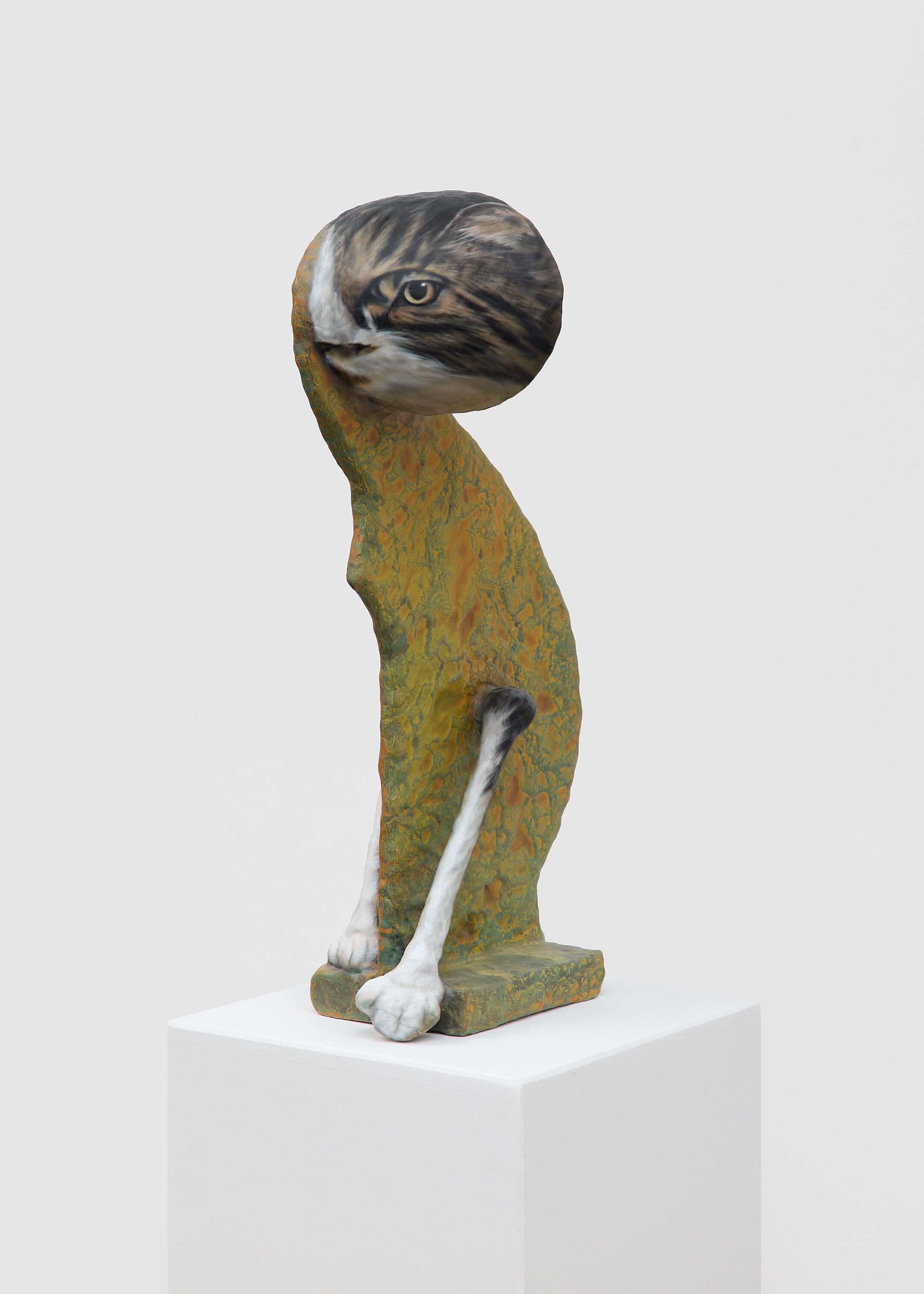 In his practice, Taewon Ahn has repeatedly depicted living, breathing beings, surviving if not thriving, within the uncertainties and uncanniness of the world. Hiro, the artist’s muse and the central figure in the exhibition, Sync, becomes the vector through which the artist views his daily life and the digital world. Hiro is both Ahn’s world-image and simultaneously a transformational being which the world-image reflects. The boundary between what is inhabited in the real and what is represented as an image no longer carries a particular meaning. Instead, Ahn embraces the spaces to which each resides, and materialises their parallel existences, synchronising them.² The images of Hiro and the Seoul home where the artist and Hiro live, if not the exhibition itself, are overlayed in the new paintings and sculptures. These three spaces, placed within reach, invite viewers to the waypoint where Ahn will continuously return, heading homeward.