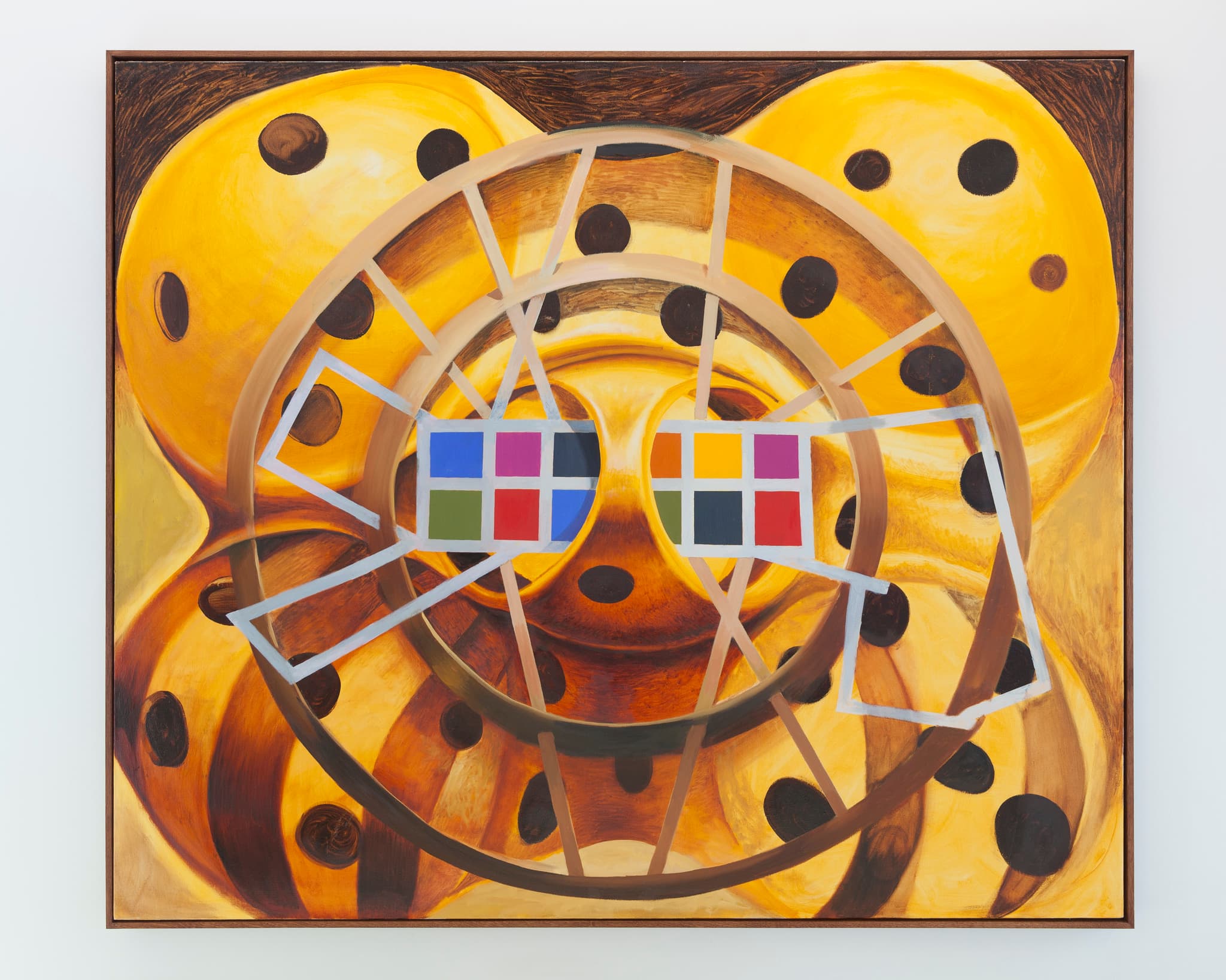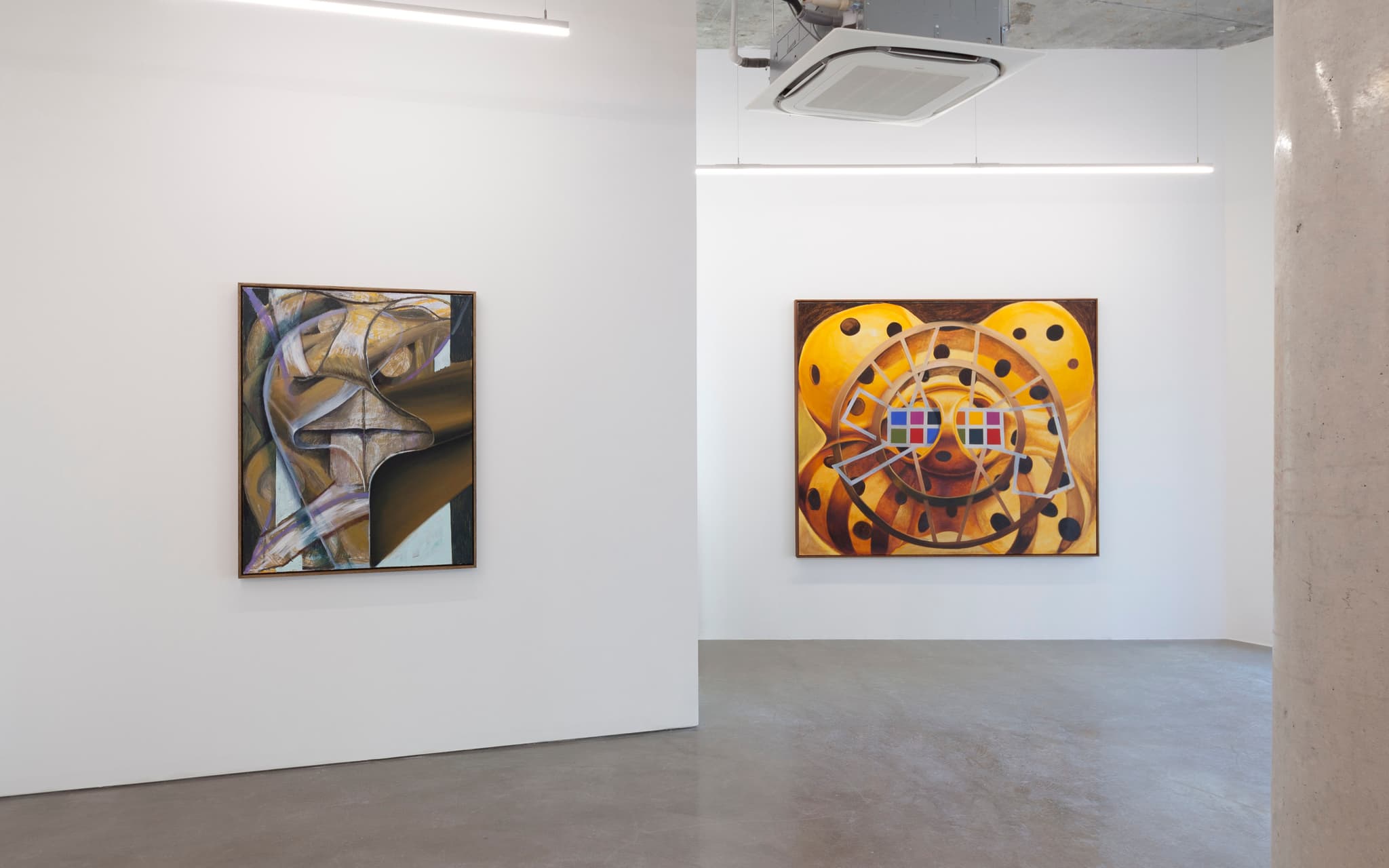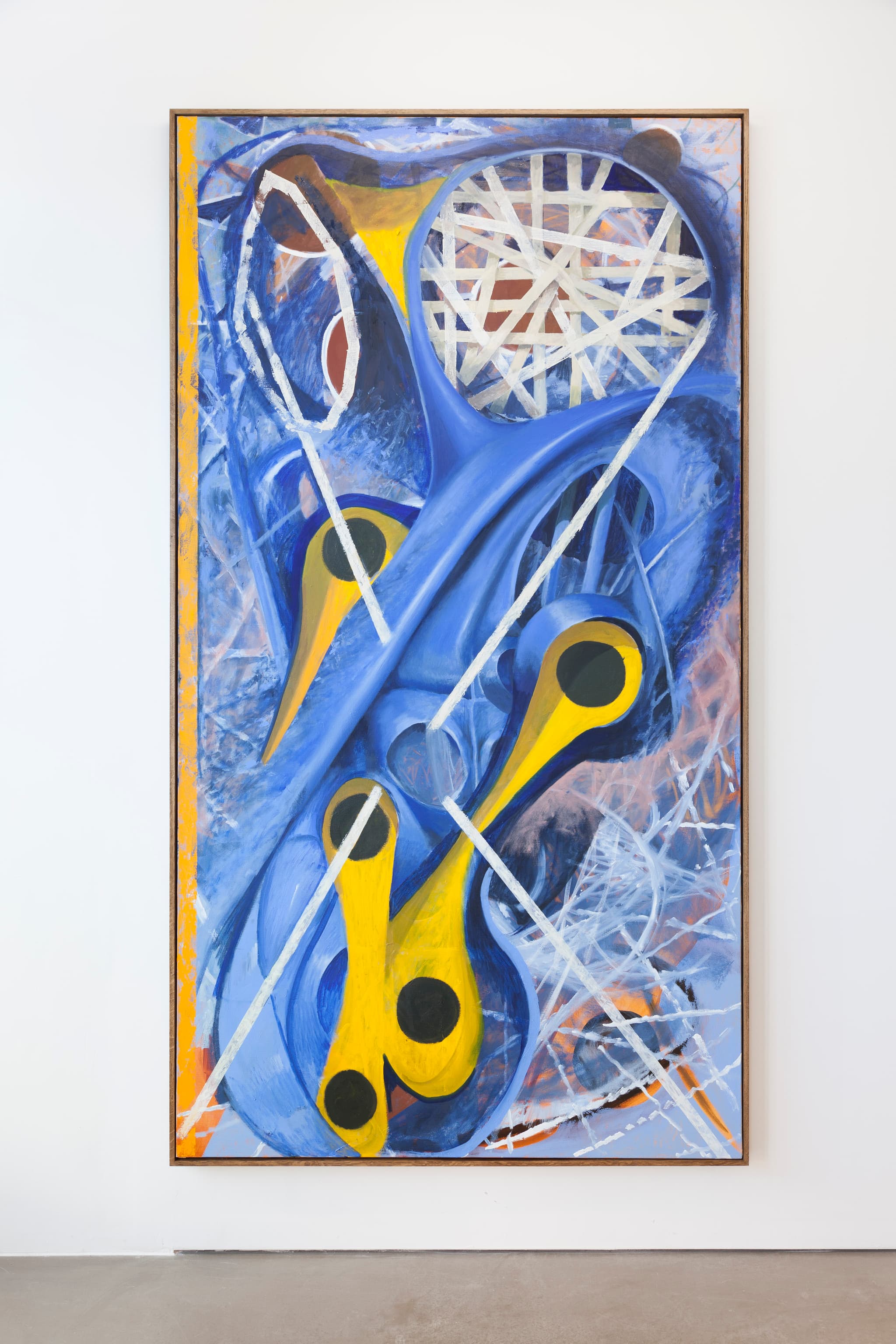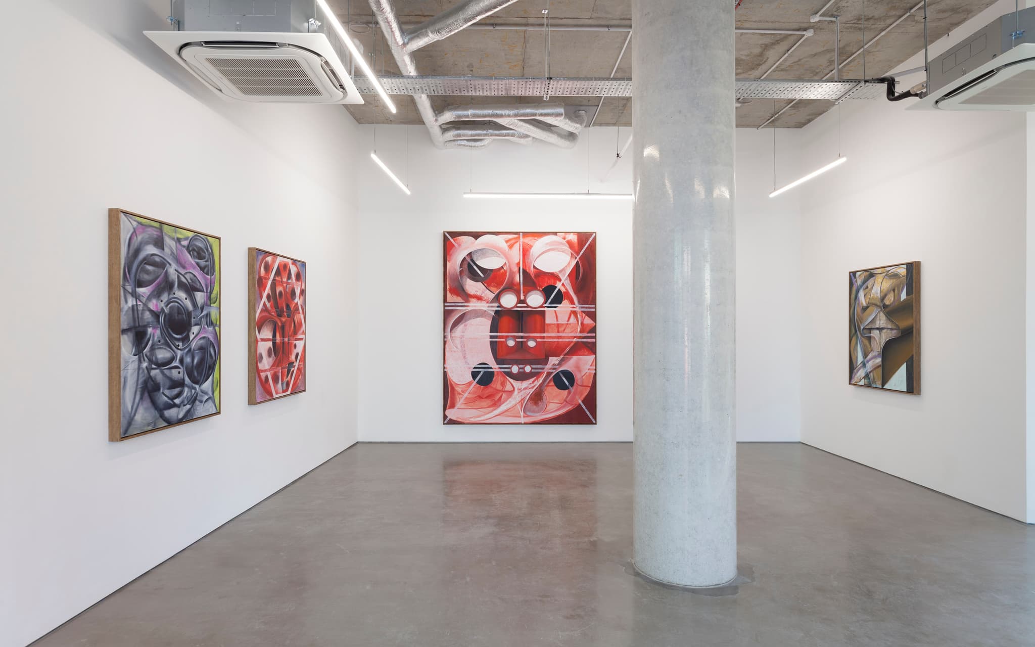 These individual forms are subdivisions of a larger whole, metabolising or masticating its interior. The paintings are held together by the pressure of their volumes; the bilateral tendency calls to mind something machinic or animal, even facial.