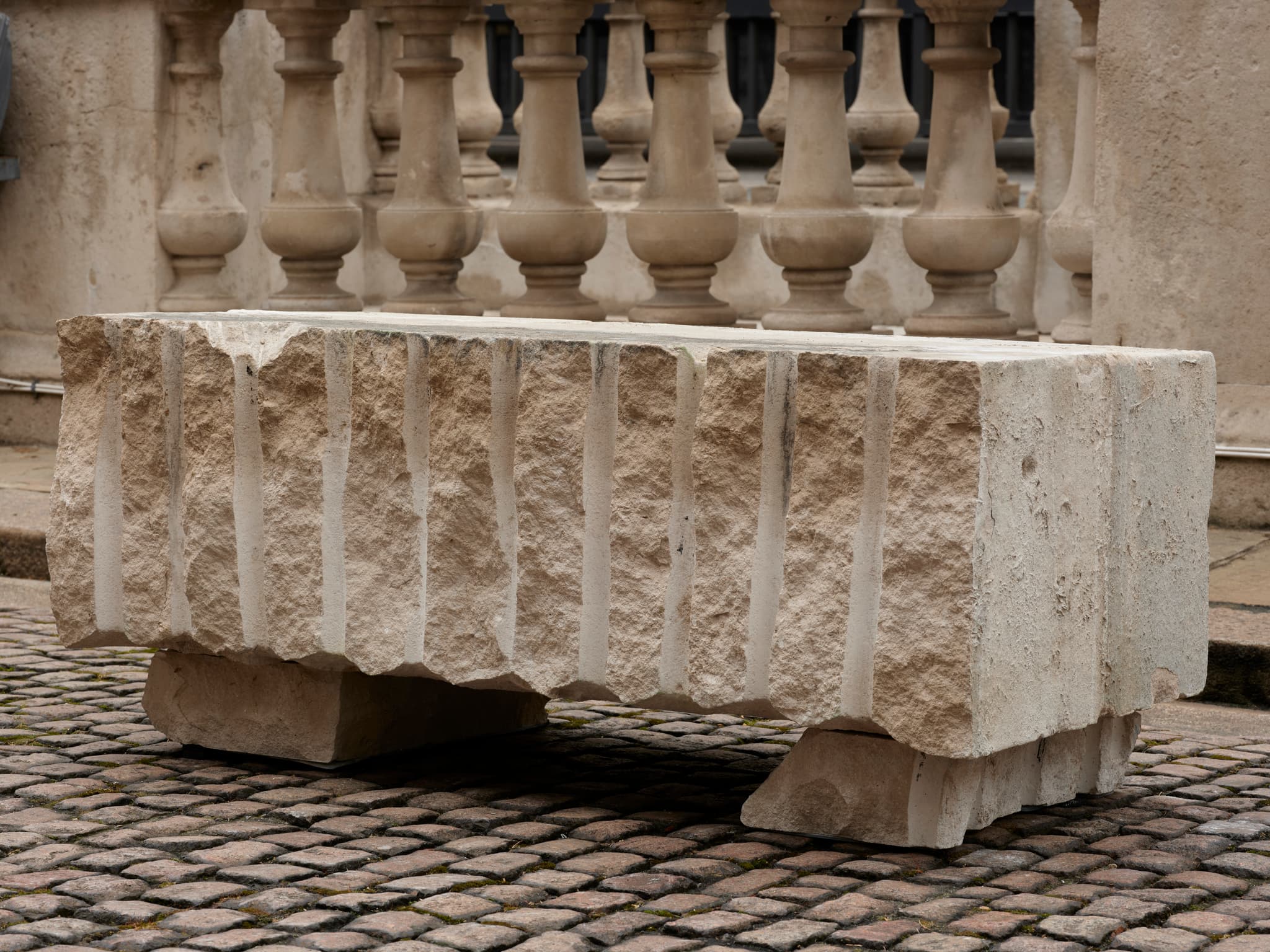 The Pits is a new installation by resident artists, Sophia Al-Maria and Lydia Ourahmane in G31, which sits in dialogue with their outdoor commission on Lancaster Place, 2125. Building on the themes explored in 2125, it delves into how social narratives in a postcolonial and late capitalist context can impact our emotional and physical well-being. The artists consider the notion of sitting and resting not just as an act of quiet defiance, but as a way of reckoning with the weight of history and its lingering effects on contemporary society.
