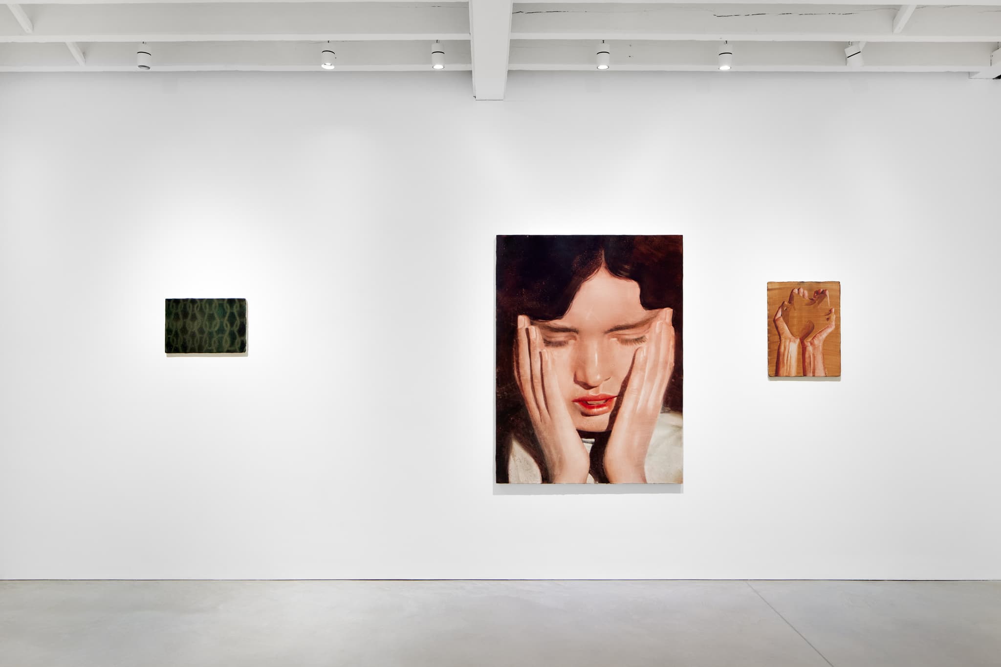 The exhibition’s title is derived from the Einsteinian notion of a time warp— the distortion of space/time. Rather than traveling radically up or down the longitudinal axis of time, this exhibition examines the latitudinal notion of the weft (weave’s past tense), which, in textile production, continually doubles back on itself. In this manner the exhibition explores recurrence— the way, to extend the metaphor, a wefting thread, transversing through the warp, may over the course of a life realign with aspects of itself, years on; the way, in a tapestry, this same phenomena creates an image, or pattern. The new paintings function as repairs or weaves or sutures in the failure of language, just as the prose-poems in the exhibition’s titular book repair the failures of image. Like the metaphorical fabric referenced in the title, it is in the interplay between these two disciplines that an auto-portrait or auto-analysis begins to emerge. For instance how does desire conveyed in language differ from image, where affect circumvents denotation?