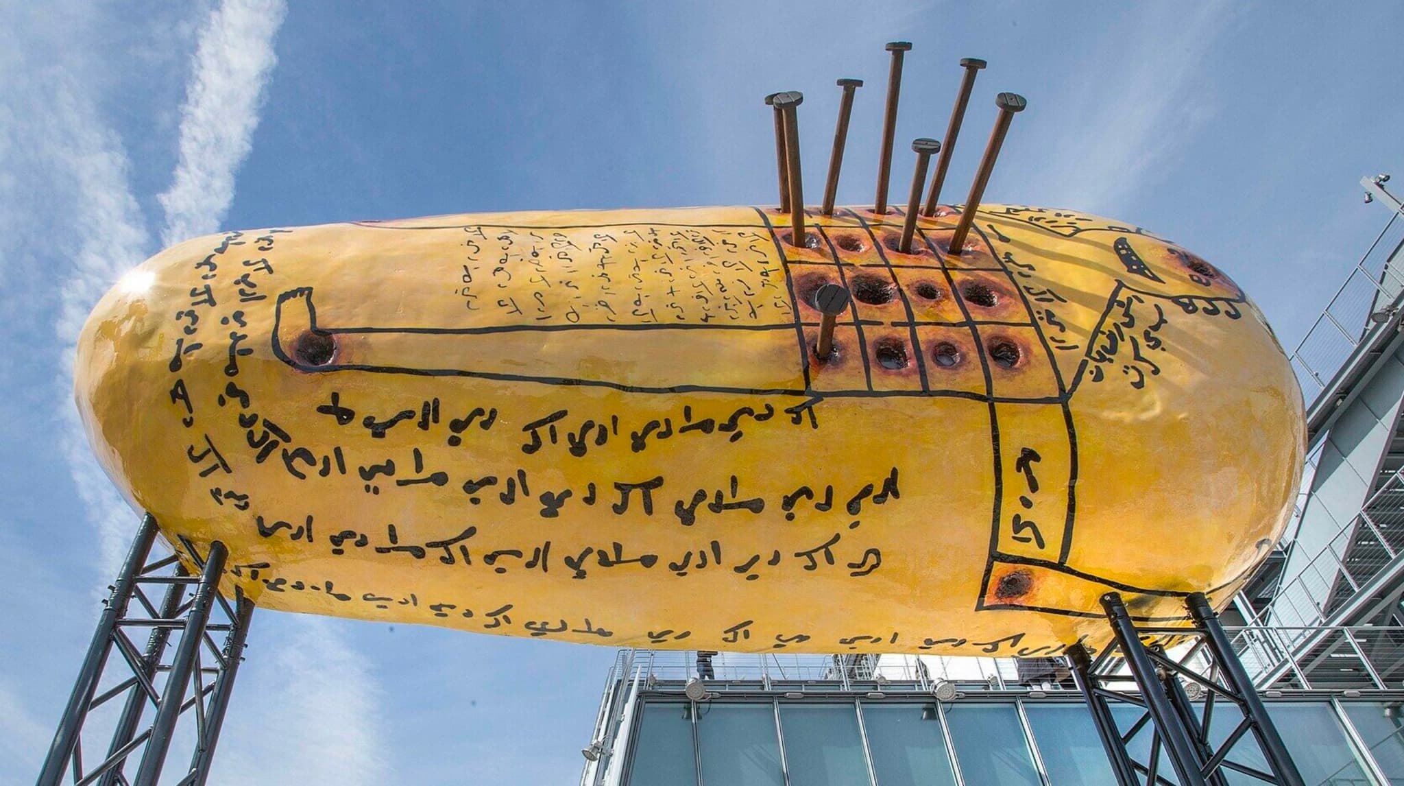 GCC’s sculptural installation for the 2017 Biennial dramatizes a bit of tabloid news: in October 2016, police were called to a beach in the United Arab Emirates when a melon—covered in talismanic inscriptions and punctured by nails—washed ashore. The object was considered a vessel of so-called black magic, which is illegal in the UAE. “While the governments of the Gulf countries have selectively chosen to revitalize certain aspects of the region’s cultural heritage, sorcery is relegated to the fringe,” GCC noted.