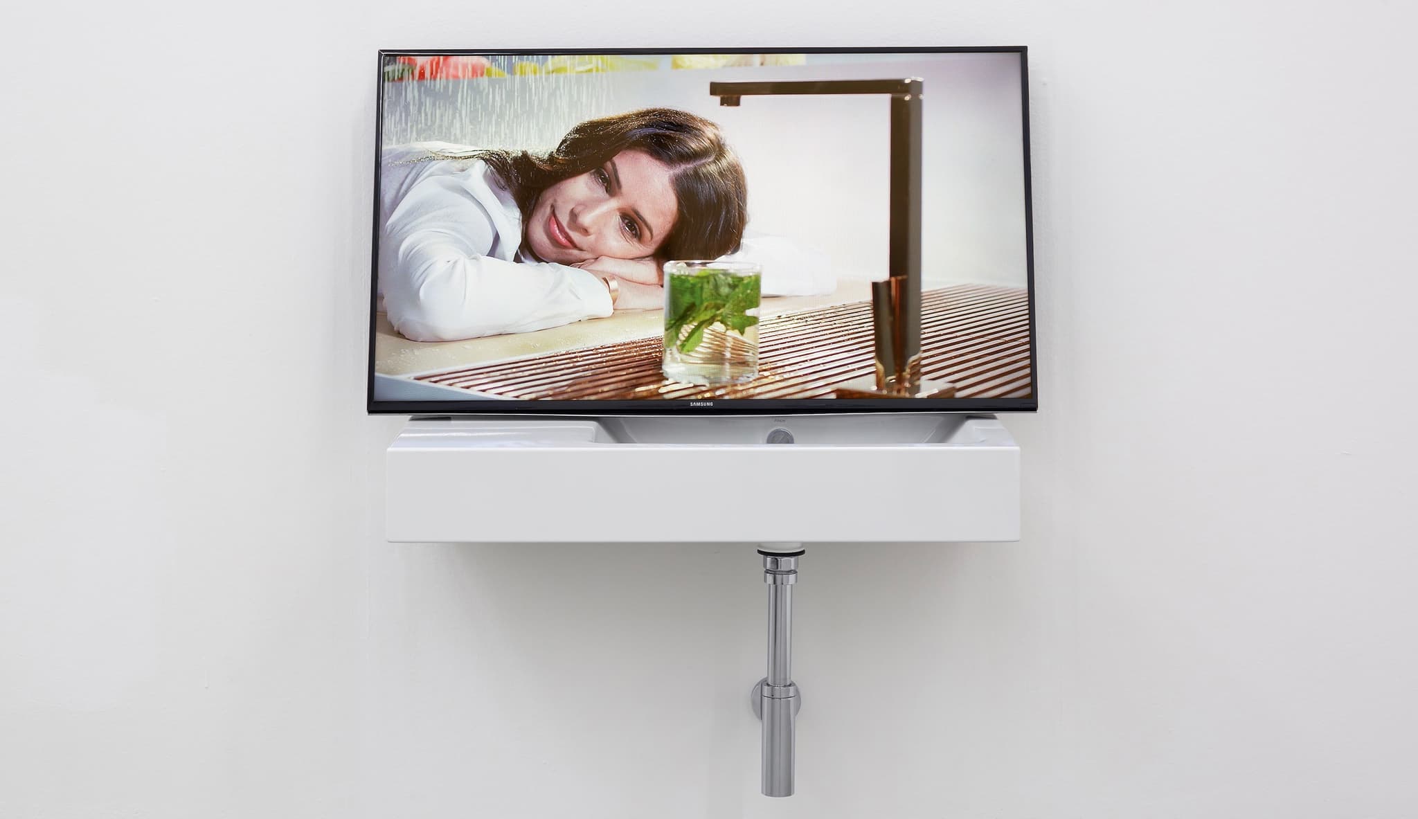 Single-channel HD video, 48" HD flat screen monitor and Capital Sports pull-up bar