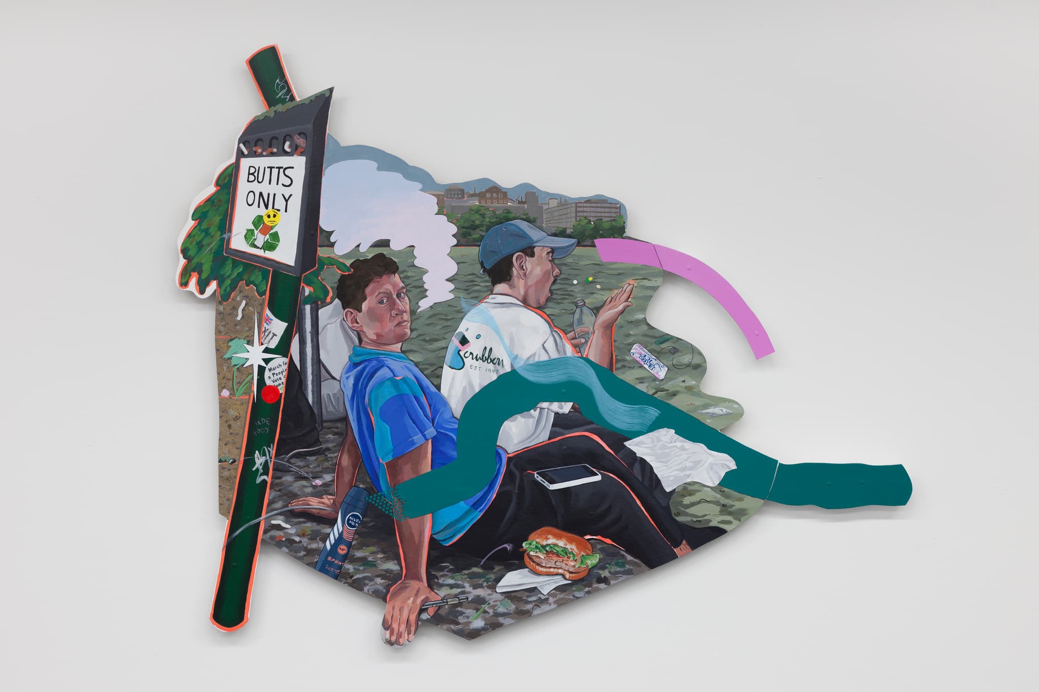 Flo Brooks is a painter of modern life. Their practice can be considered as a revising of traditional genre painting: at the very centre of each painting is a personal reflection on work, leisure and the in-between. Speaking of their approach, Brooks has said: “It feels fundamental to think critically about the ways we connect with each other, and what this might look like in our own lives. I make sense of things through lived experience, through intimate relationships and the communities I’m part of, whether that’s the rural community I grew up in, queer and trans communities, art networks or my blood family”.