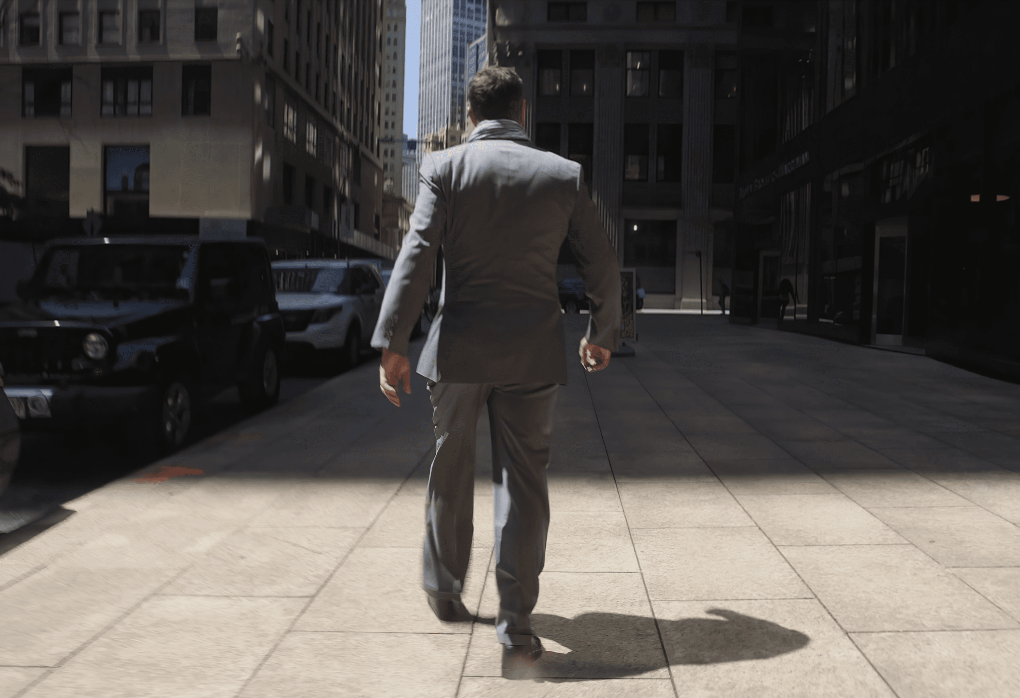 At the Busan Biennale 2024, Sophia Al-Maria presents Bull and Bear (2023), a preparation in photography and sound for a future video-work. The pictures capture the back of a man in a suit, walking through an urban landscape. The man is Richard Quest, a British journalist working for the American channel CNN who acquired quasi-mythological fame through his program Quest Means Business. Quest’s characteristic voice became associated with the fluctuations of the market, hence the title of Al-Maria’s work 'Bull and Bear' referring to the rising (bull) and falling (bear) trends in the financial market. Al-Maria asked Richard Quest to read T.S. Elliot’s The Hollow Men (1925) which forms her new audio work Between the Essence and the Descent (2024). The fragmented poem, alluding to a certain canon of world literature but also to modern life vernaculars, draws an emotional landscape of collapse, brokenness, loss, despair, apathy, and spiritual emptiness in the aftermath of the First World War, suggesting an end of civilisation. By letting Quest read The Hollow Men, Al-Maria creates a powerful association between acquising to the omnipotency of capitalism as the only viable system, and powerlessness of all the great creations of human civilisation referred to in The Hollow Men to infuse life with meaning. At some point the poem references the Buddhist Fire Sermon, learning us to restrain our worldly desires and passions in order to attain spiritual enlightenment.